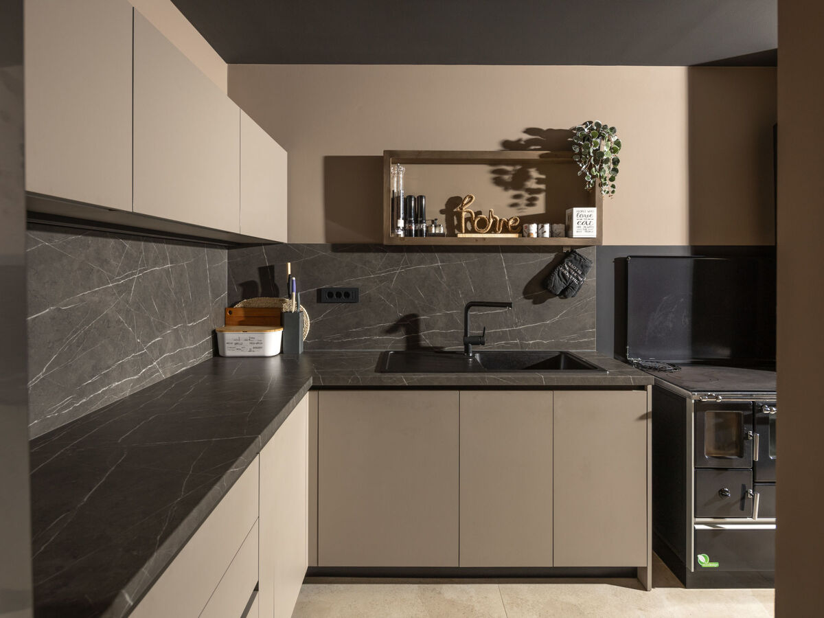 Cuisine ouverte (4 plaques de cuisson, four, lave-vaisselle, Poêle à gaz, 4 feux, grille-pain, bouilloire électrique, micro-ondes).