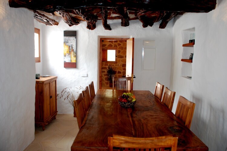 Vadella Can est une finca uniques (environ 40 000 m² de chaussée) avec une belle vue sur les sommets des montagnes de Ses Roques Altes et la vallée Es Canal de Sa Torre; un endroit où vous trouverez une intimité totale et la paix et pouvez profiter de la nature. La finca est vieille de 300 ans et a été rénové avec de beaux matériaux et des techniques du passé. Il ya utilisation de bois et de pierre. La plupart des meubles est spécialement main. La maison est une immense terrasse avec un frisson de pergola. Il ya aussi une grande cuisine extérieure couverte avec un barbecue. Ici vous pouvez dîner à la table à manger en bois. De là, vous pouvez regarder sur l'étang et la piscine circulaire (diamètre d'environ 7 m., Profondeur d'environ 1,60 m.) Avec ligbedden.De finca est situé dans un beau quartier à Cala Vadella, à 4 km du village pittoresque de San José, à 2 km de la plage de Cala Vadella et à proximité immédiate des plages de Cala d 'Hort, Cala Tarida et Cala Conta.Via les portes ouvertes de la maison principale vous entrez dans un salon confortable avec un mobilier rustique, cheminée, coin salon , équipées de TV satellite, lecteur DVD, WiFi et connexion iPod. Au-delà de la salle à manger avec poutres spéciales et authentiques et belle EETT bois