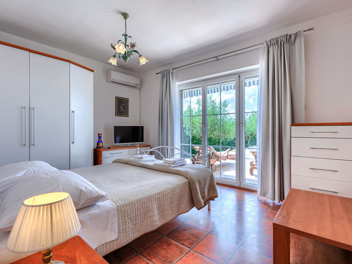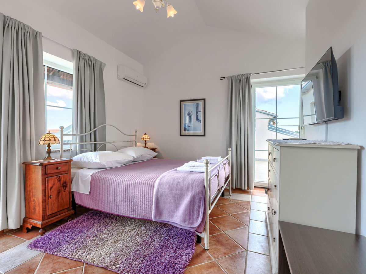 À l'étage supérieur: 1 chambre avec 1 grand-lit (160 cm, longueur 200 cm), TV (satellite) et air-conditionné.
