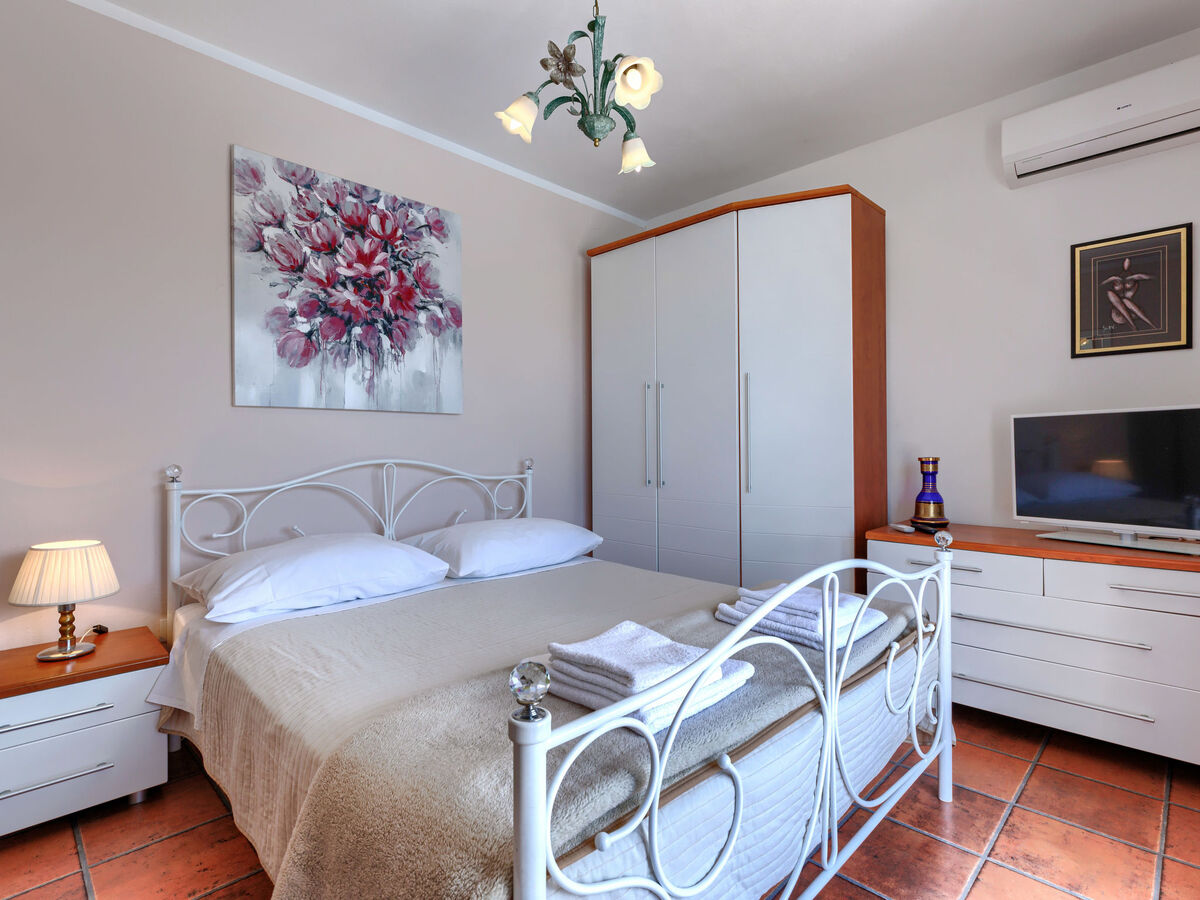 1 chambre avec 1 grand-lit (160 cm, longueur 200 cm), TV (satellite) et air-conditionné.