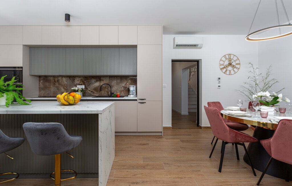 Cette maison confortable et spacieuse vous accueille à Matulji, au-dessus d'Opatija. Installez-vous confortablement avec vos proches dans les pièces lumineuses. L'aménagement est moderne et de bon goût et confère à l'intérieur de la maison une ambiance chaleureuse. Vous pourrez vous détendre dans l'une des nombreuses pièces confortablement aménagées, avant de rejoindre les autres dans les espaces communs agréables pour cuisiner, manger et vous détendre ensemble.