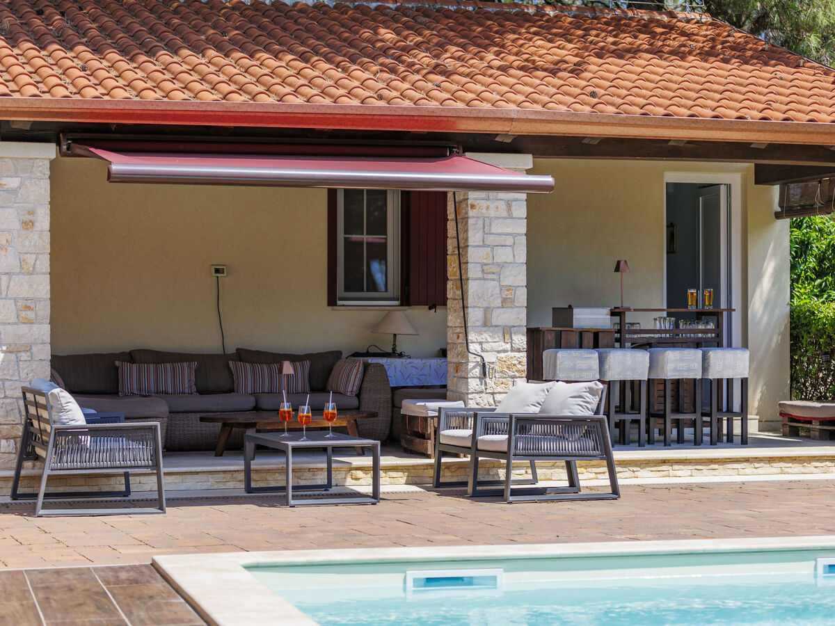Douche/WC dans l'espace piscine, douche extérieure, badminton, terrasse (20 m2), meubles de jardin, barbecue.