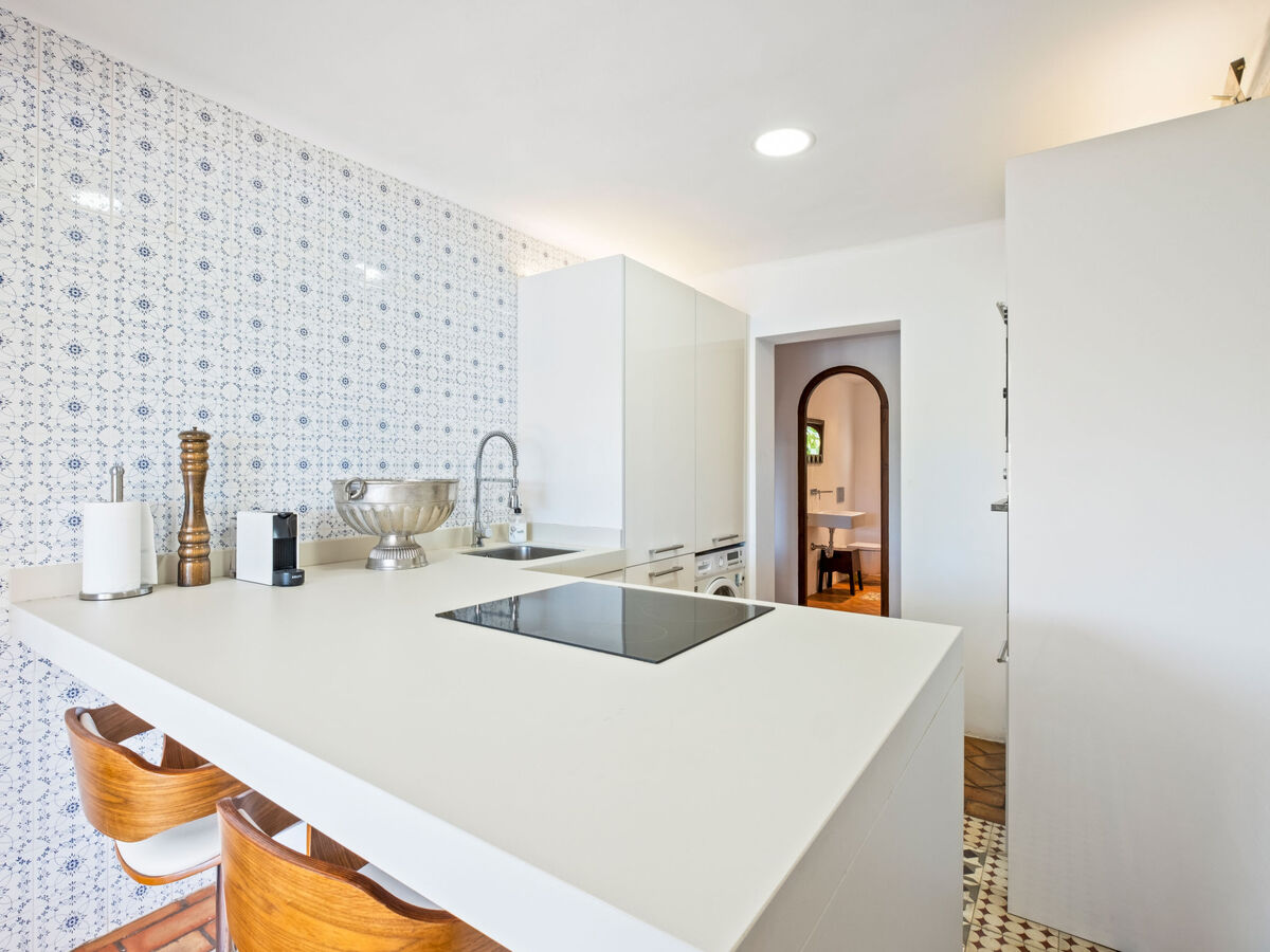 Cuisine ouverte (lave-vaisselle, 3 plaques à induction, grille-pain, bouilloire électrique, micro-ondes, cafetière électrique).