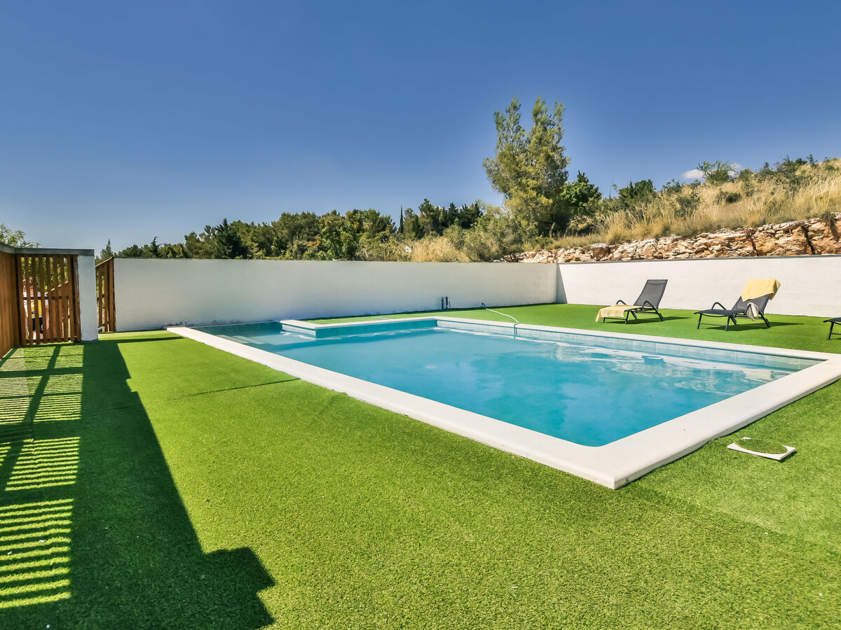 A usage privé: terrain 200 m2 (clôturé), piscine rectangulaire (8 x 4 m, profondeur 145 cm, disponibilité saisonnière: 04.Mai.