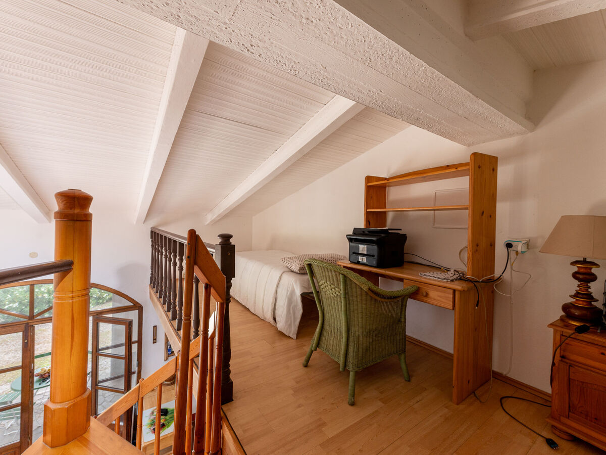 À l'étage supérieur: (escalier en colimaçon) galerie mansardée, ouverte avec 3 lits.