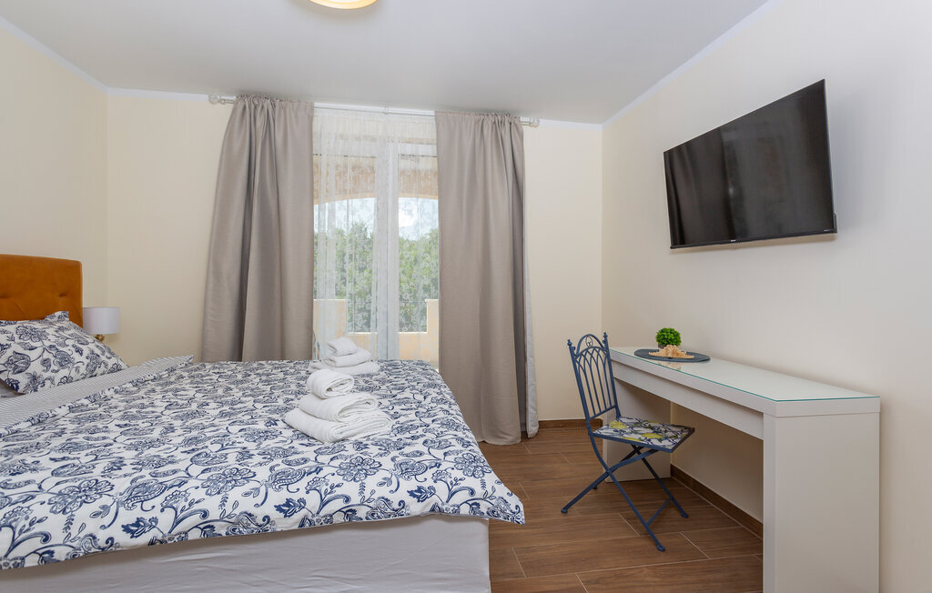 Sveti Vid Dobrinjski vous offre une base tranquille pour explorer l'île de Krk. Le parc tout proche est idéal pour les familles, et votre hôte sympathique se fera un plaisir de vous montrer les meilleures plages. L'île elle-même vous enchantera avec ses promenades pittoresques, ses sentiers de randonnée balisés et ses activités passionnantes comme la location de quads et les sports nautiques. Visitez les installations de wakeboard en bord de mer à Punat ou profitez de la gastronomie variée et de la vie nocturne de l'île. Krk propose des loisirs pour tous les goûts et répond à tous vos souhaits.