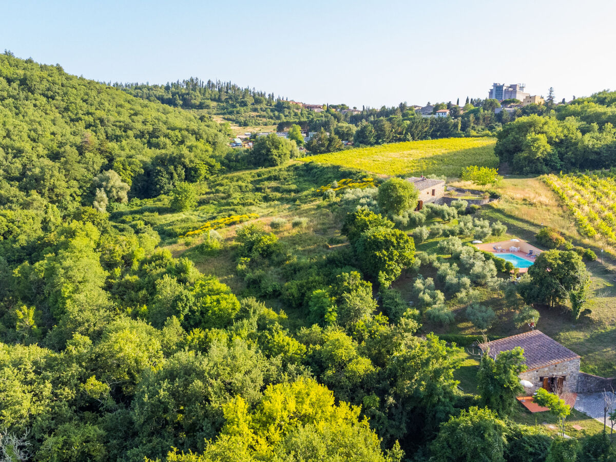 À 1 km du centre de Castellina in Chianti, situation ensoleillée, à 200 m de la forêt, dans la verdure.