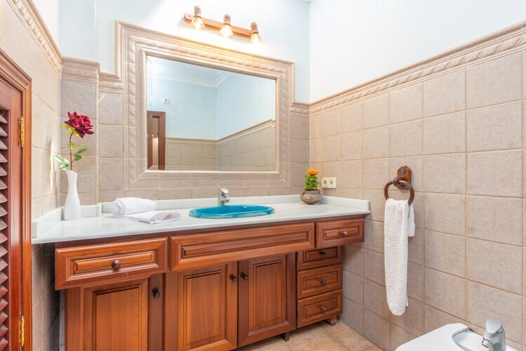 El rústico interior, distribuido en dos plantas, empieza por un salón, con aire acondicionado y Smart TV, que está abierto al comedor, creando un espacio amplio y luminoso para relajarse y comer junto a sus acompañantes. Además, la cocina equipada con vitrocerámica cuenta con todos los utensilios necesarios para cocinar deliciosos platos durante la estancia. Hay una segunda sala muy luminosa donde encontrarán un sillón perfecto para disfrutar de una tarde leyendo un libro. Para finalizar esta planta baja, tienen un dormitorio con dos camas individuales, armario y A/C, y un baño completo con bañera. Subiendo las escaleras, encontrarán las dos habitaciones restantes, ambas con una cama doble y con salida al exterior, un dormitorio da a un balcón y el otro a una terraza con dos hamacas, ideal para tomar el sol. Todas las habitaciones de la casa disponen de armario y A/C. Finalmente, un segundo baño completo con bañera da servicio a esta primera planta. Disponen de lavadora, secadora, plancha y tabla de planchar para su uso durante la estancia. Si viajan con un bebé podrán hacer uso de la cuna y trona.