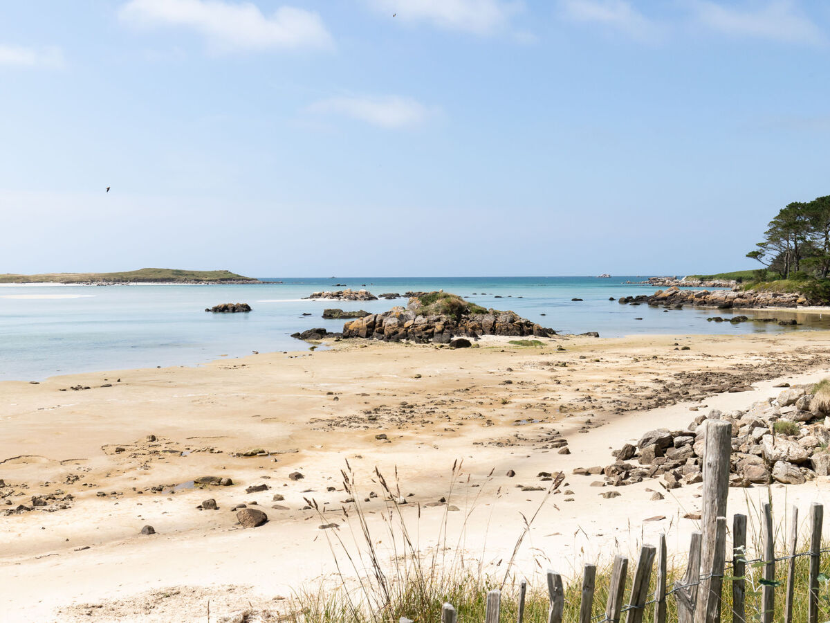 À 1.5 km du centre de Guisseny, à 5.5 km du centre de Kerlouan, situation tranquille, à 90 m de la mer, à 400 m de la plage, accès direct à la plage.