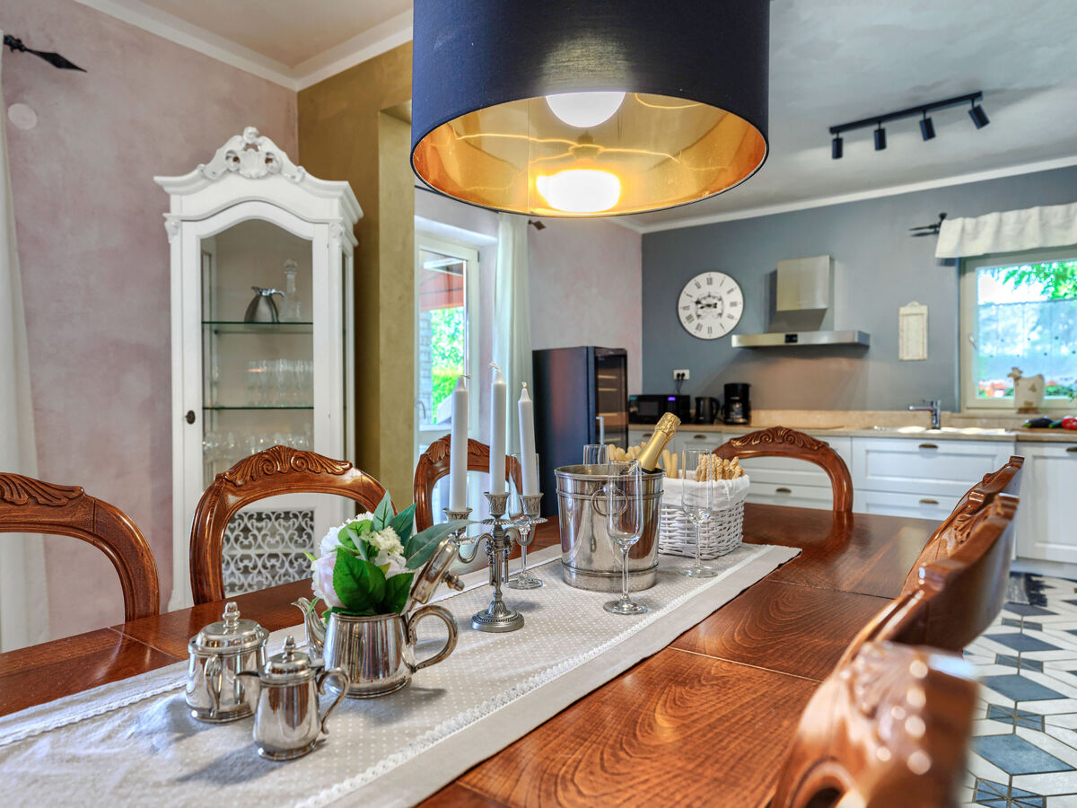 A usage privé: terrain 750 m2 (clôturé), plantes et arbres, piscine rectangulaire (8 x 4 m, profondeur 140 cm, disponibilité saisonnière: 01.Mai.