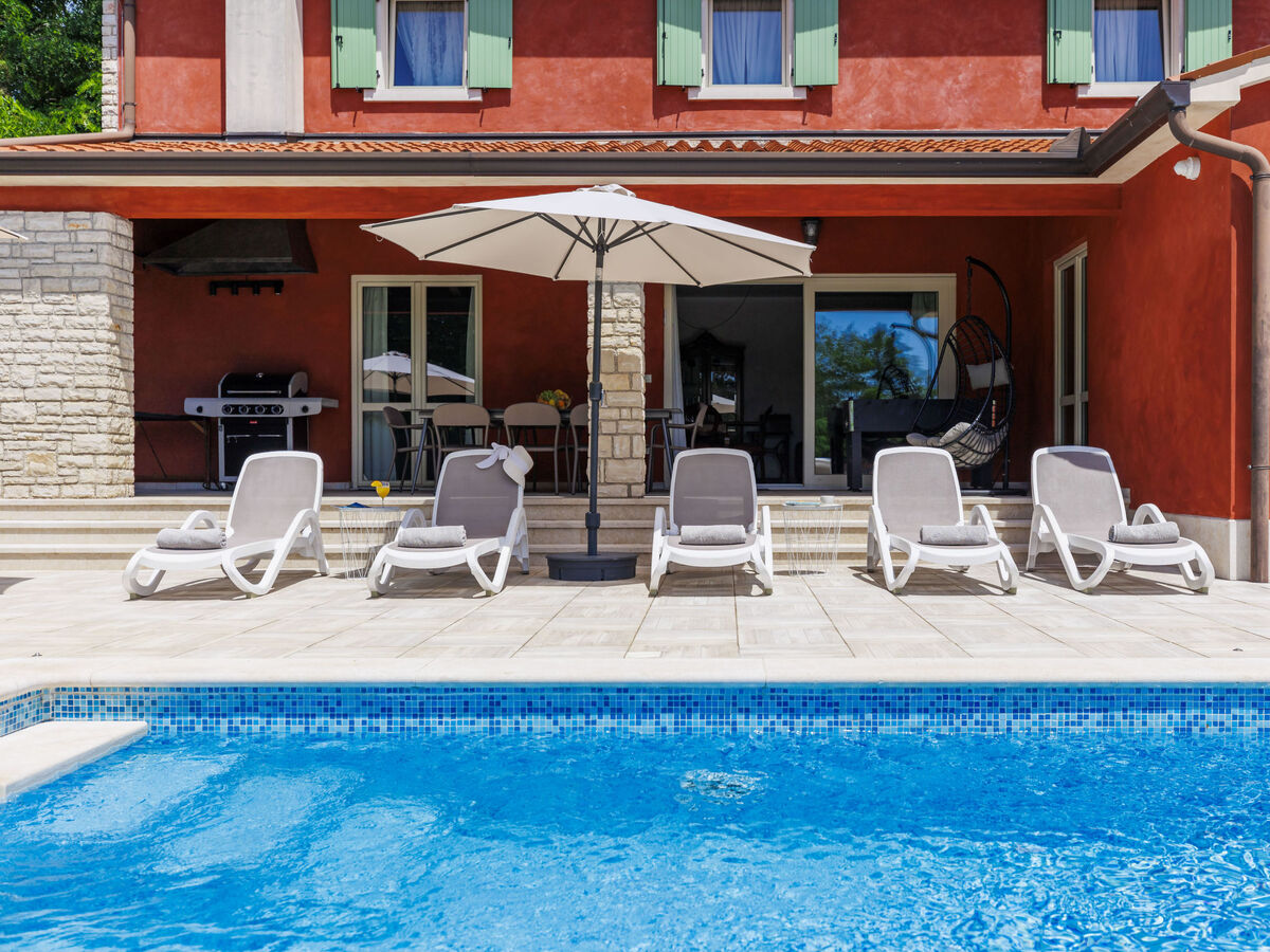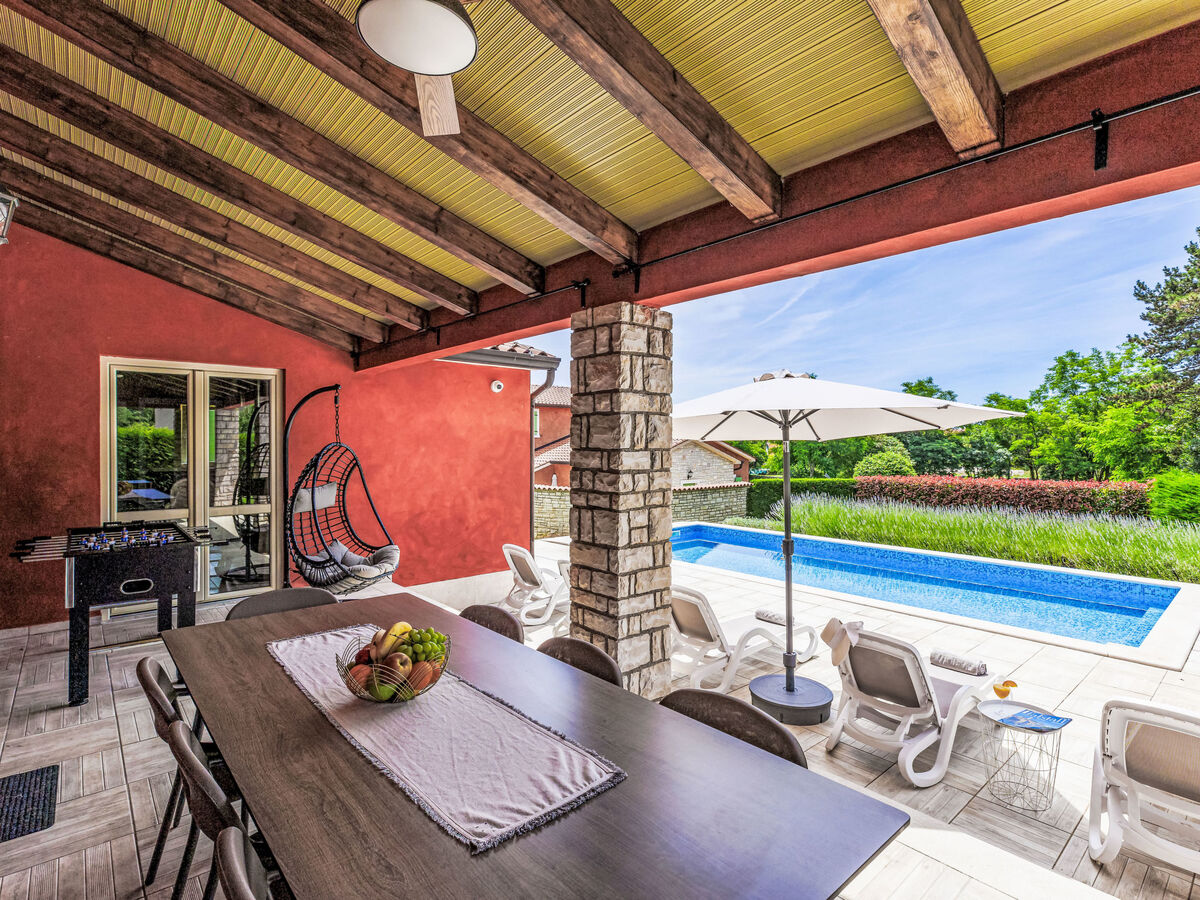 Douche extérieure, terrasse, meubles de jardin, barbecue, espace de jeux pour les enfants (toboggan, balançoire), entretien de la piscine par le propriétaire/jardinier.