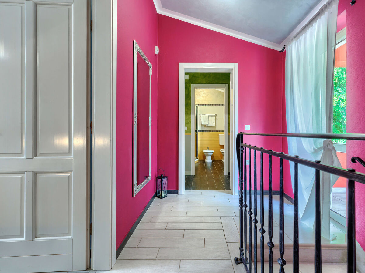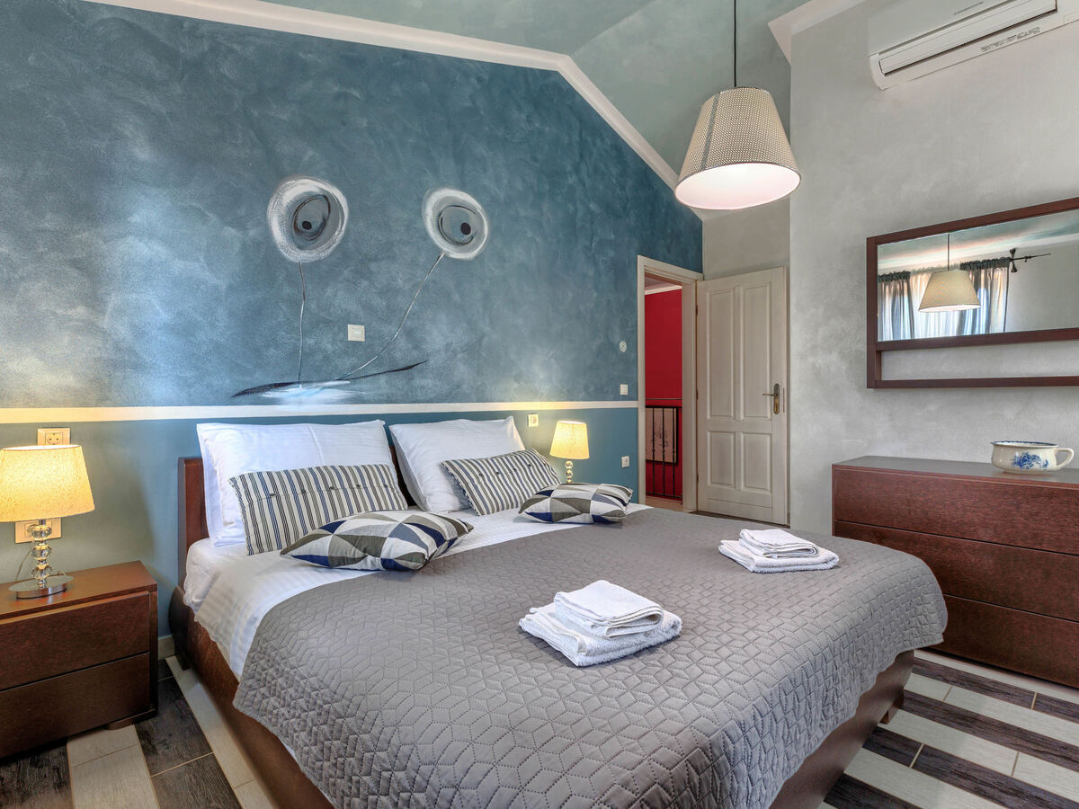 À l'étage supérieur: 1 chambre avec 1 grand-lit (180 cm, longueur 200 cm), douche/bidet/WC et air-conditionné.