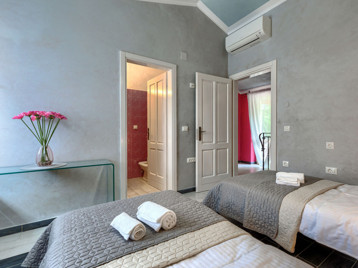 1 chambre avec 2 lits (90 cm, longueur 200 cm), douche/bidet/WC et air-conditionné.