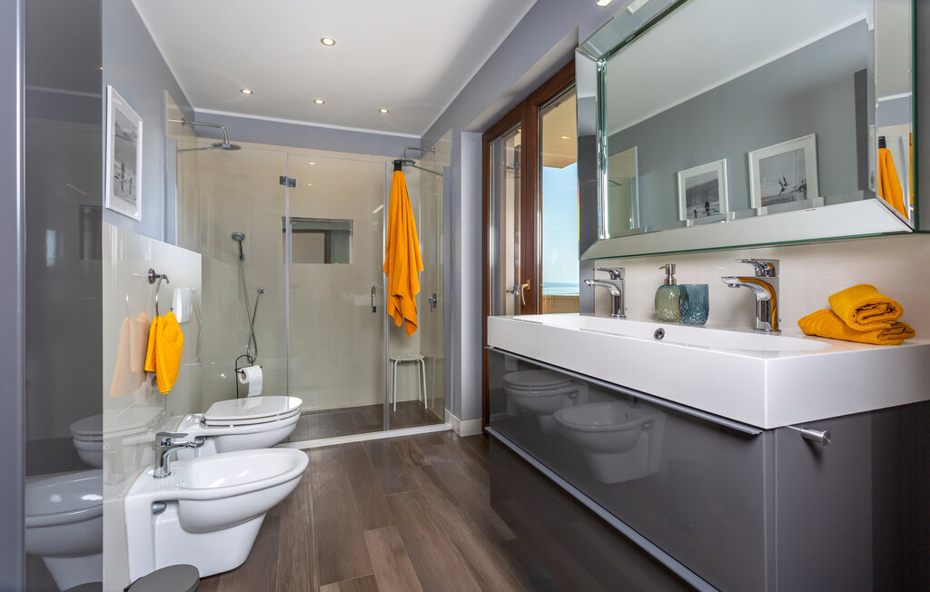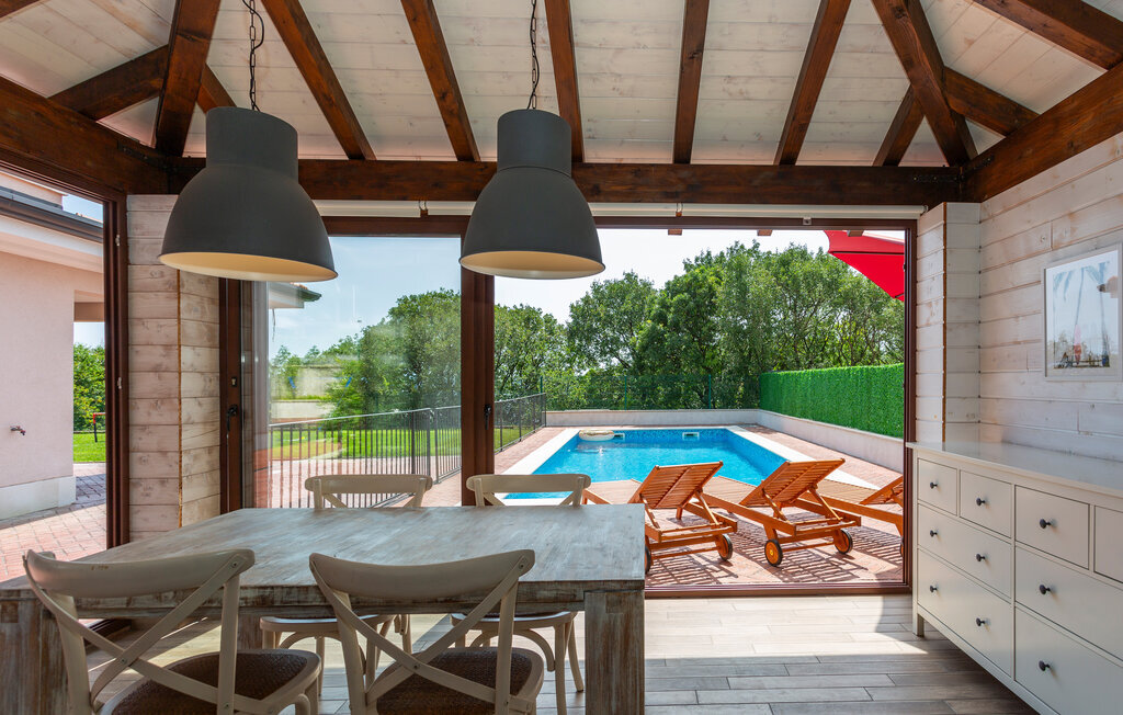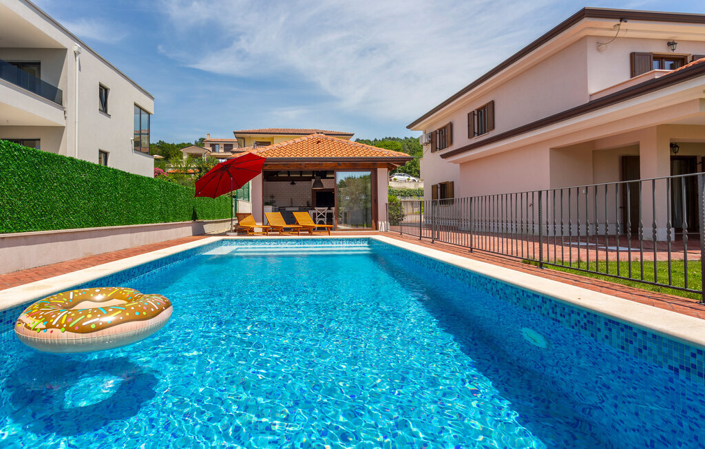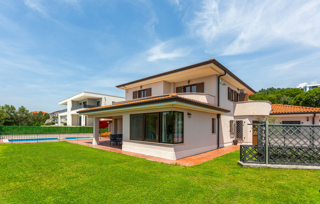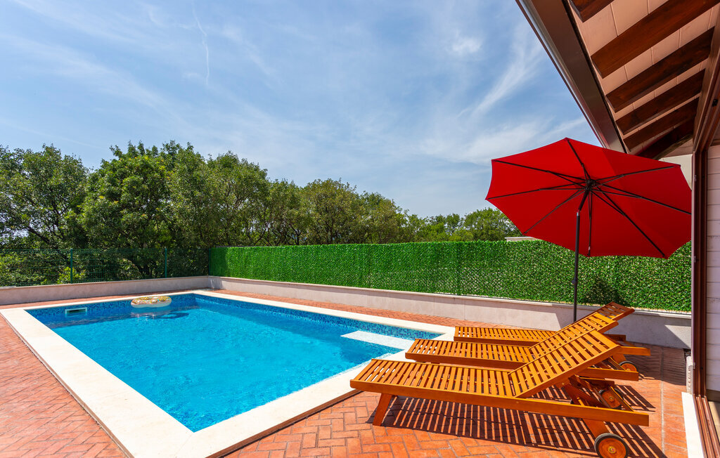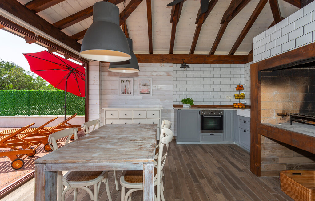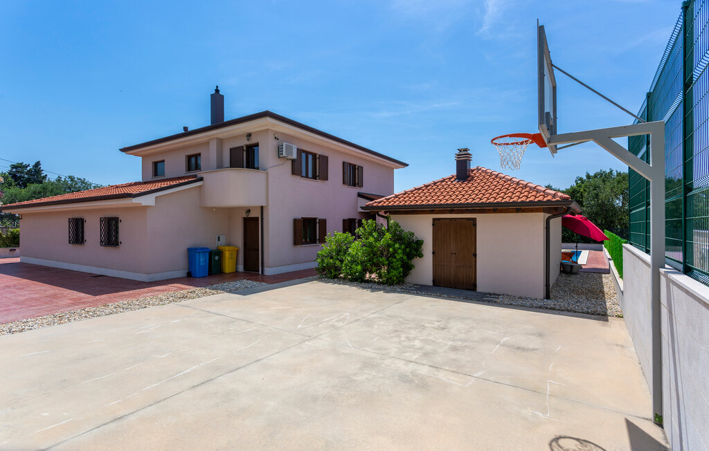 Réjouissez-vous des plus belles semaines de l'année et vivez dans cette maison de vacances la combinaison parfaite du confort moderne et de l'ambiance méditerranéenne. Les pièces intérieures aménagées avec style créent une atmosphère accueillante, tandis que la terrasse couverte et la cuisine d'été du pool house vous garantissent de longues soirées à l'abri des intempéries. Situé sur un terrain clôturé, vous profitez de l'intimité et de la détente. La piscine privée vous invite à vous rafraîchir pendant que les enfants s'amusent dans la maison de jeux et sur le terrain de basket. Depuis le premier étage et le jardin, vous profitez d'une vue magnifique sur la mer parfaite pour vos vacances reposantes en famille.