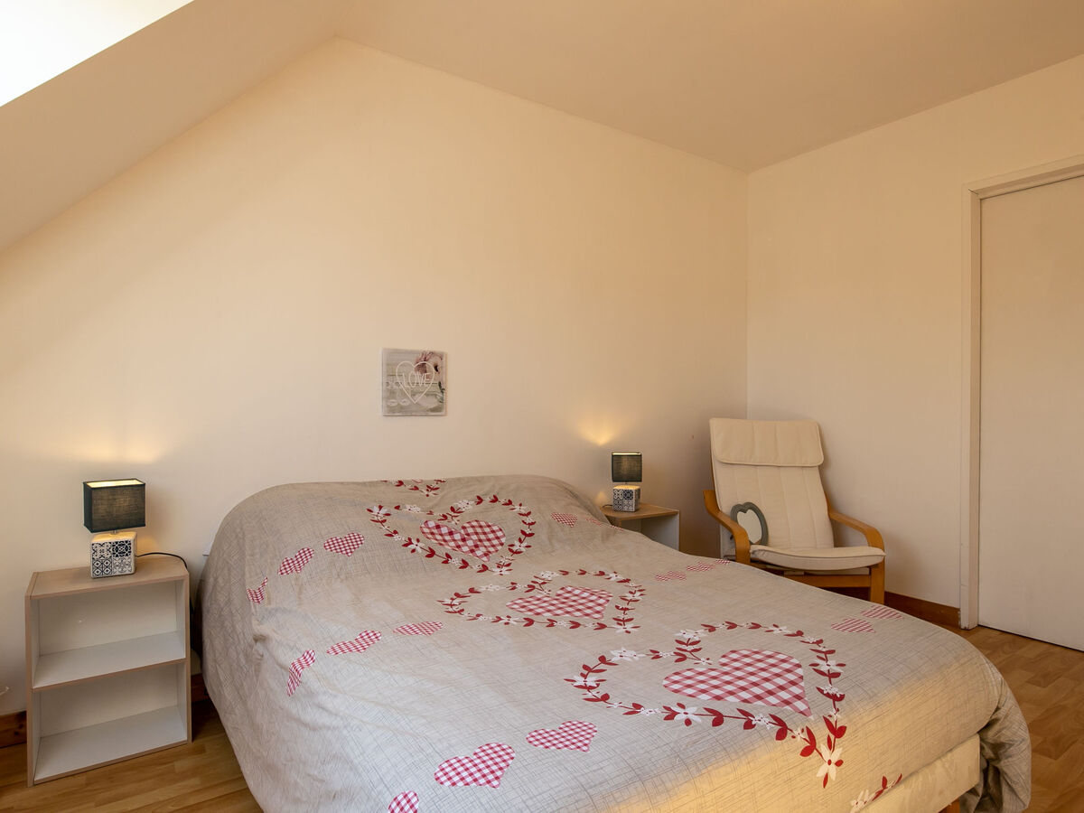 À l'étage supérieur: 3 chambres, chaque chambre avec: 1 grand-lit (140 cm, longueur 190 cm).
