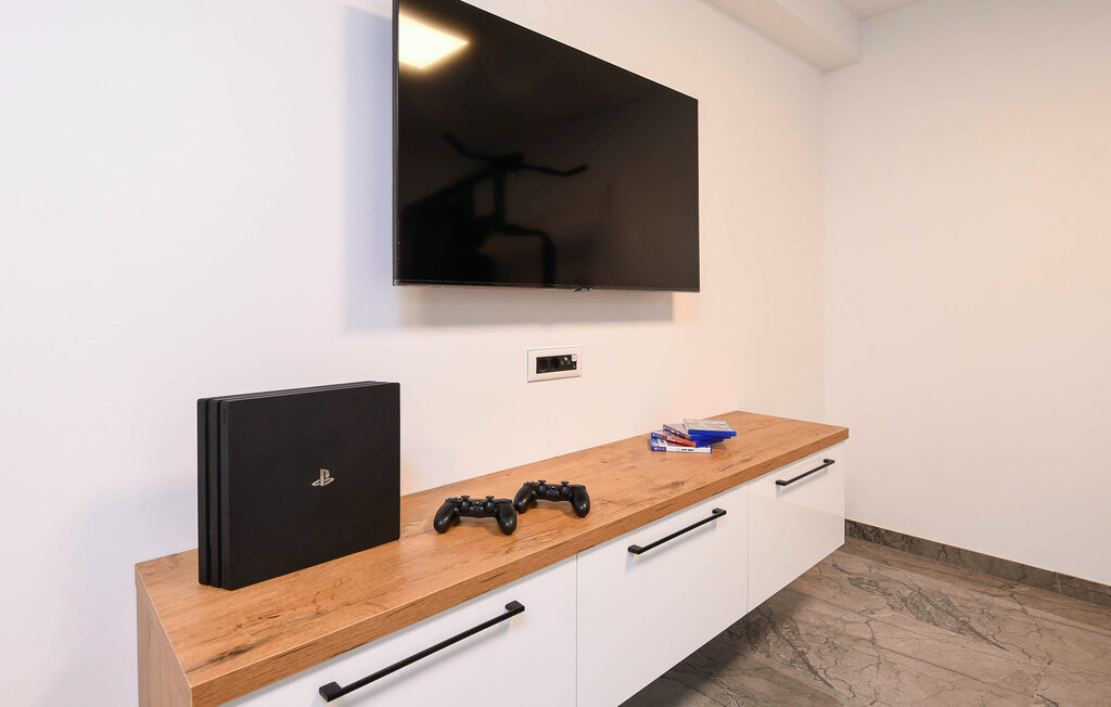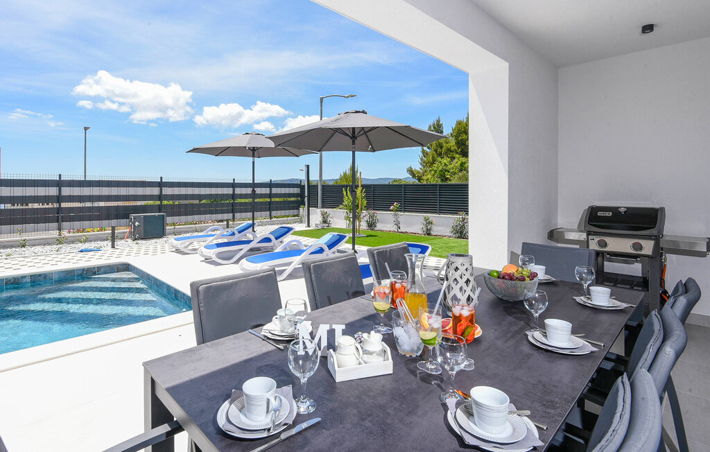 Commencez la journée bien reposé et laissez-vous inspirer par l'aménagement moderne de la cuisine bien équipée pour préparer un copieux petit déjeuner pour toute la famille. Que vous le dégustiez à l'intérieur autour de l'élégante table à manger ou à l'extérieur sur la terrasse couverte avec barbecue, c'est vous qui décidez. L'après-midi, les chaises longues vous invitent à prendre une boisson rafraîchissante. Ou profitez sur le balcon de la vue époustouflante sur la mer d'un bleu profond au loin. Vous y trouverez également un jacuzzi bienfaisant. La piscine privée vous permettra de vous rafraîchir et de nager à votre guise. La salle de fitness vous permet de rester en forme pendant vos vacances et le sauna de l'hôtel vous permet de vous détendre pleinement.