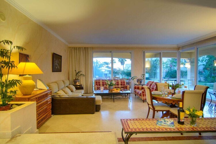 Villa orientée sud (600m2), terrasses (75m2), piscine et jardin dans l'urbanisation exclusive Las Chapas Playa, à seulement 75m de la plage Playa el Alicate