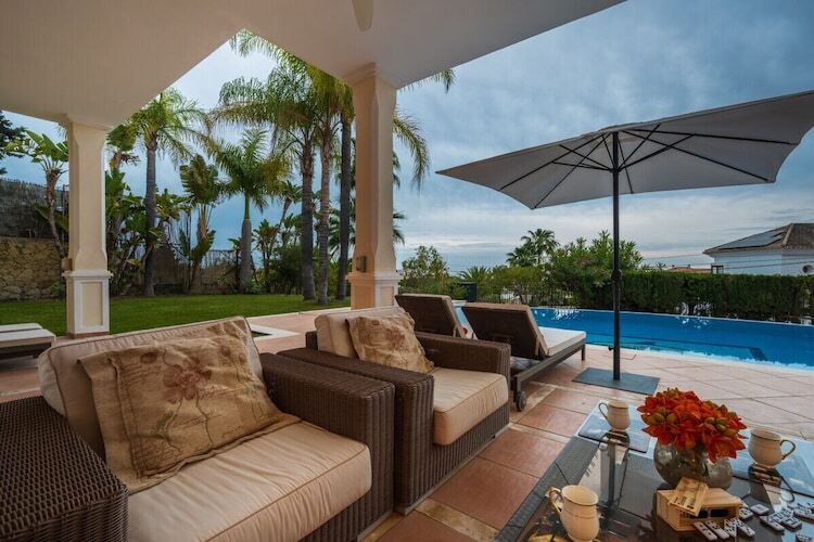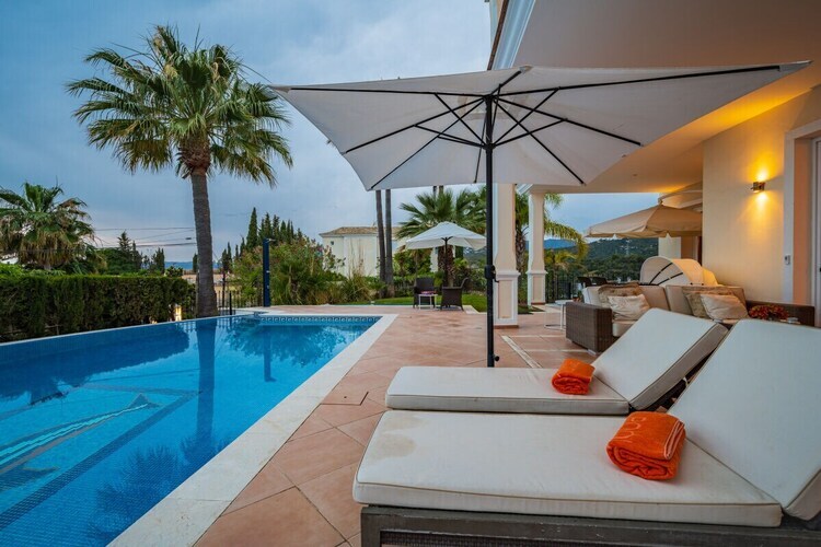 Impressionnante villa de 5 chambres sur un beau terrain de 1232 m2 avec terrasse, piscine chauffée, transats, barbecue, jardin méditerranéen et vue mer