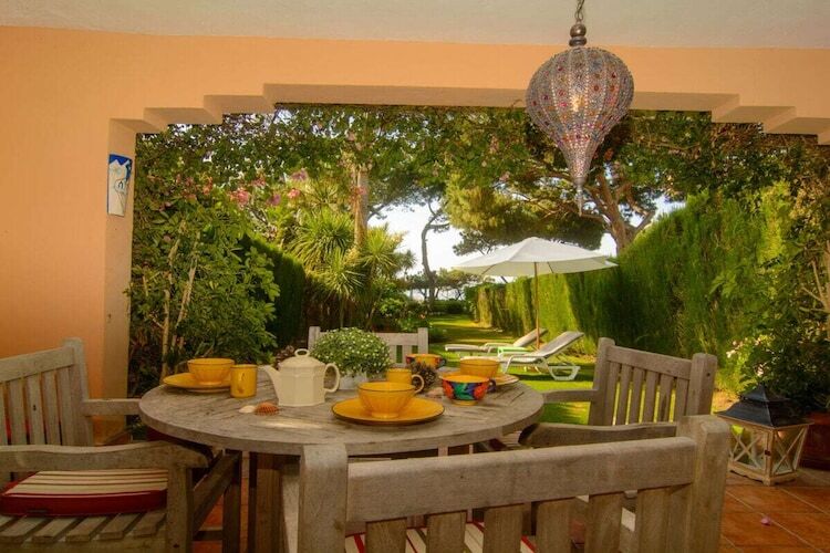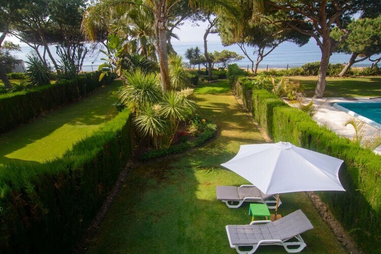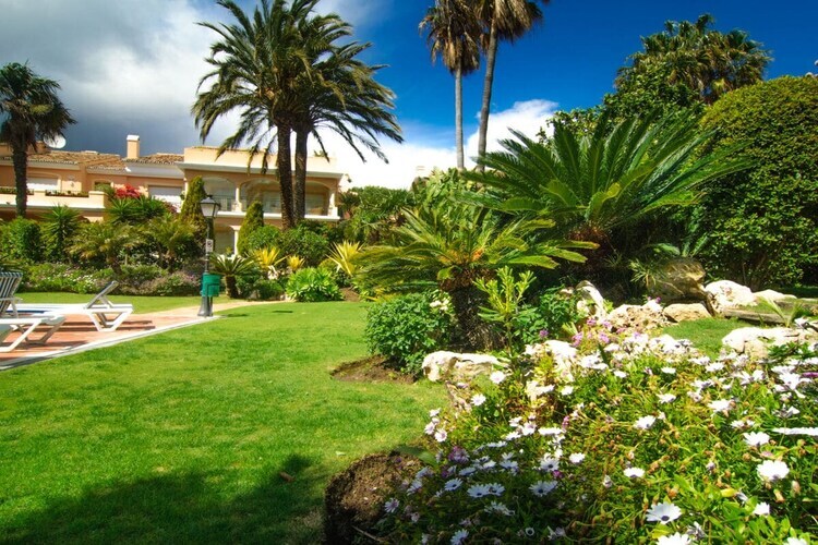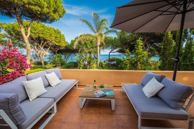Maison de ville en première ligne (160m2) à New Golden Mile, jardin privé avec sortie directe sur la plage, deux terrasses (21m2 chacune), vue sur la mer, piscine commune, sauna