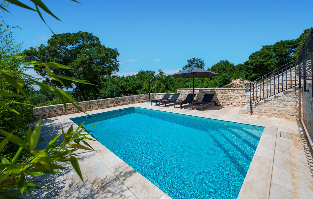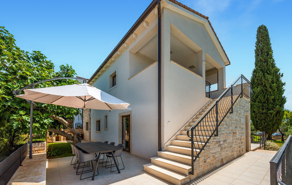 Située dans un cadre pittoresque en Istrie, votre imposante maison de vacances à Golas vous accueille pour des vacances tout confort, au calme et avec des excursions passionnantes. Dès le matin, votre piscine privée vous attend pour un premier rafraîchissement bienfaisant. Profitez du calme et du temps libre de vos vacances en nageant et plus tard en vous relaxant sur les confortables chaises longues. Profitez du jardin idyllique pour apprécier la nature. Les arbres offrent une ombre agréable, tandis que les sièges confortables invitent à la détente. Sur votre pelouse, les activités sportives comme le football et le badminton sont de mise. Le balcon à l'étage supérieur ouvre la vue sur la mer qui scintille à l'horizon de manière alléchante.