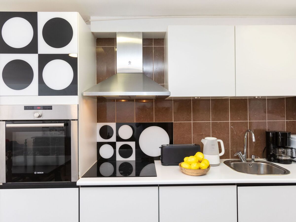 Cuisine ouverte (four, lave-vaisselle, grille-pain, bouilloire électrique, micro-ondes, congélateur).
