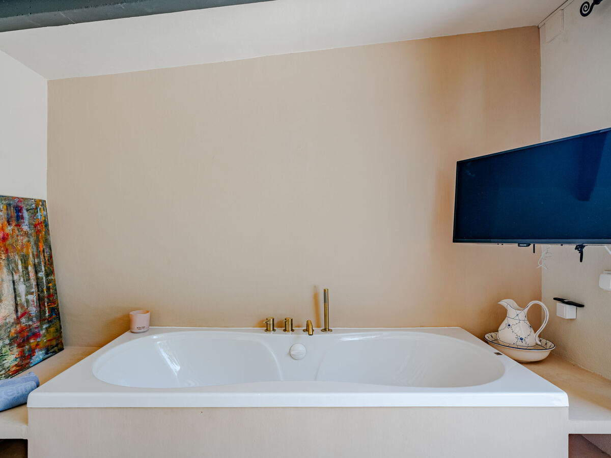 1 chambre avec 1 lit double (2 x 80 cm, longueur 200 cm), air-conditionné et chauffage à air chaud.