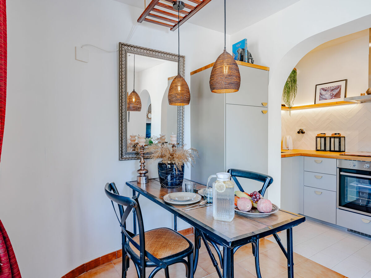 Spacieux et clair, rénovée, aménagement très agréable et de style: séjour/salle à manger avec TV (satellite), air-conditionné et chauffage à air chaud.