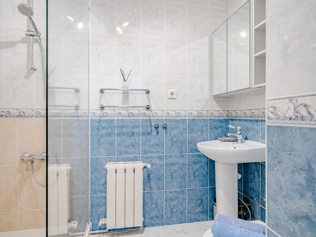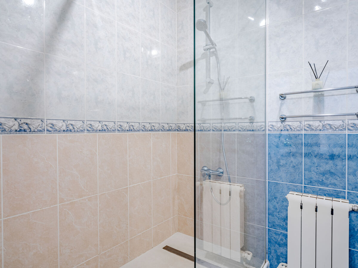 1 chambre avec 1 grand-lit (160 cm, longueur 200 cm), douche/WC, air-conditionné et chauffage à air chaud.