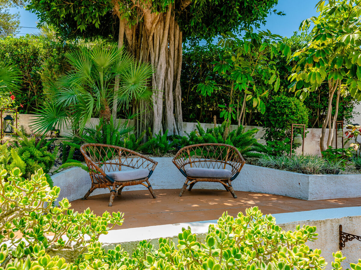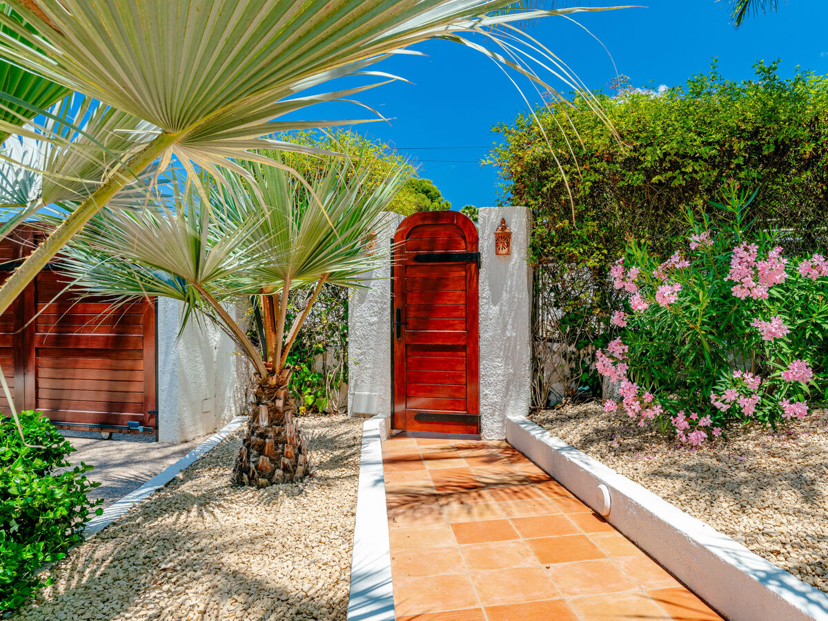 Douche extérieure, jardinet, pergola, meubles de jardin, barbecue, place de parking sur le terrain.
