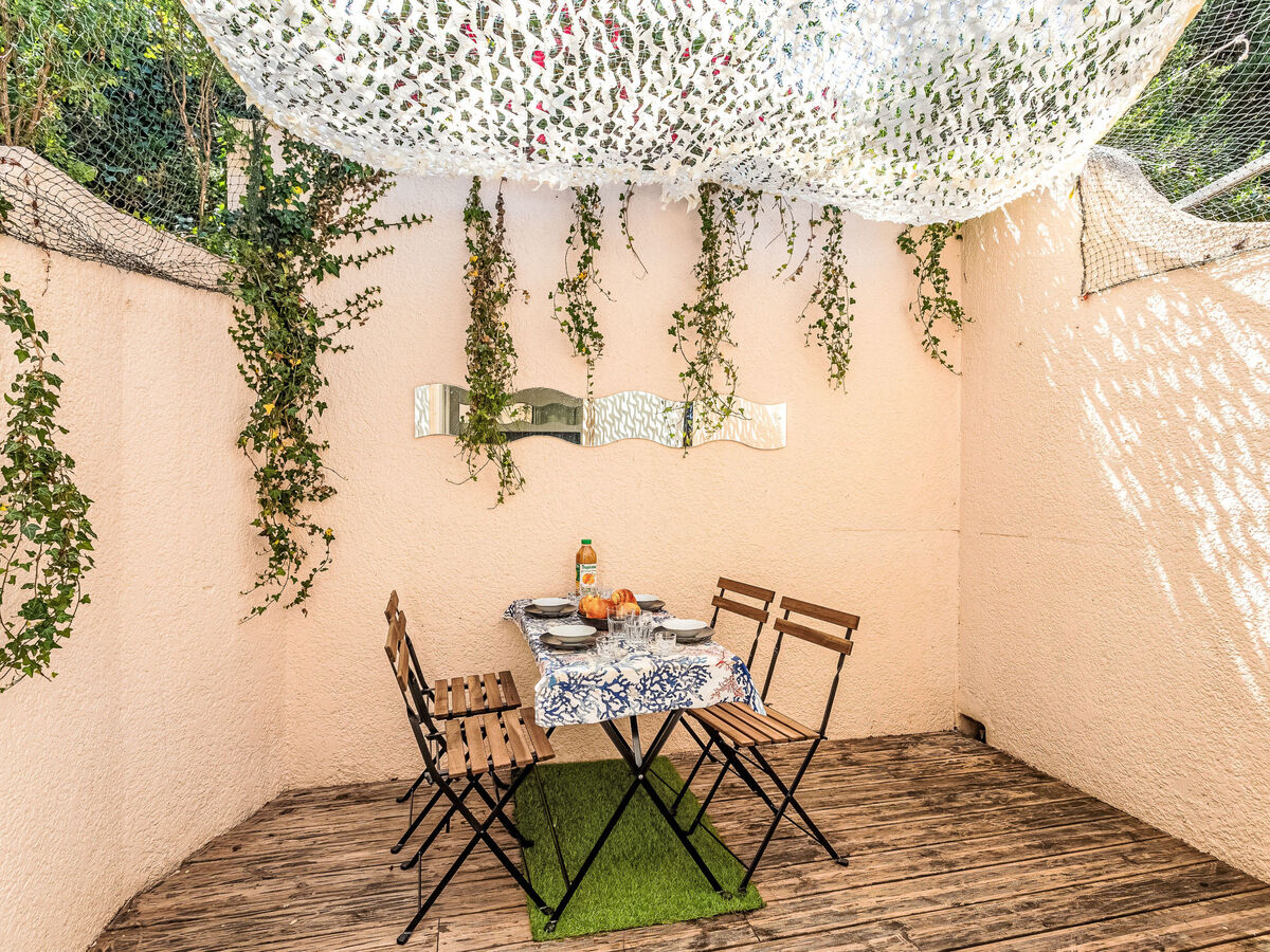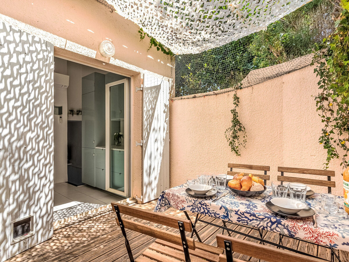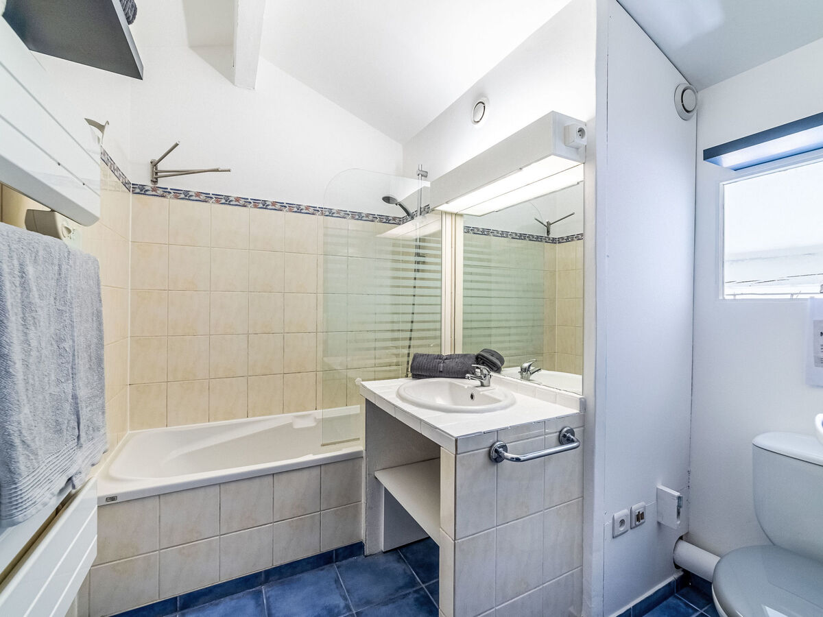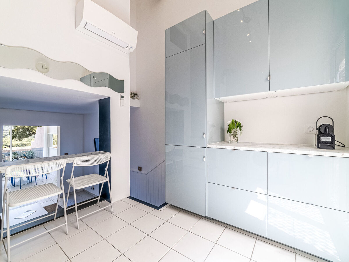 Complètement rénovée en 2023, aménagement agréable: séjour/salle à manger avec 1 divan-lit (140 cm, longueur 190 cm), TV (écran plat), air-conditionné.
