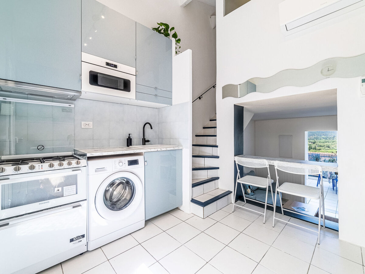 Cuisine ouverte (3 plaques de cuisson, four, lave-vaisselle, grille-pain, bouilloire électrique, micro-ondes, cafetière électrique).