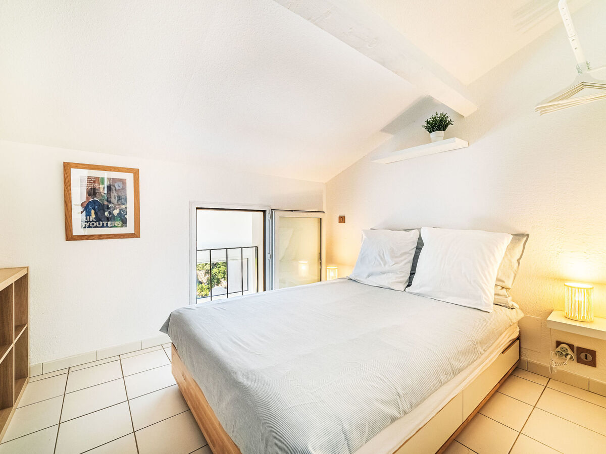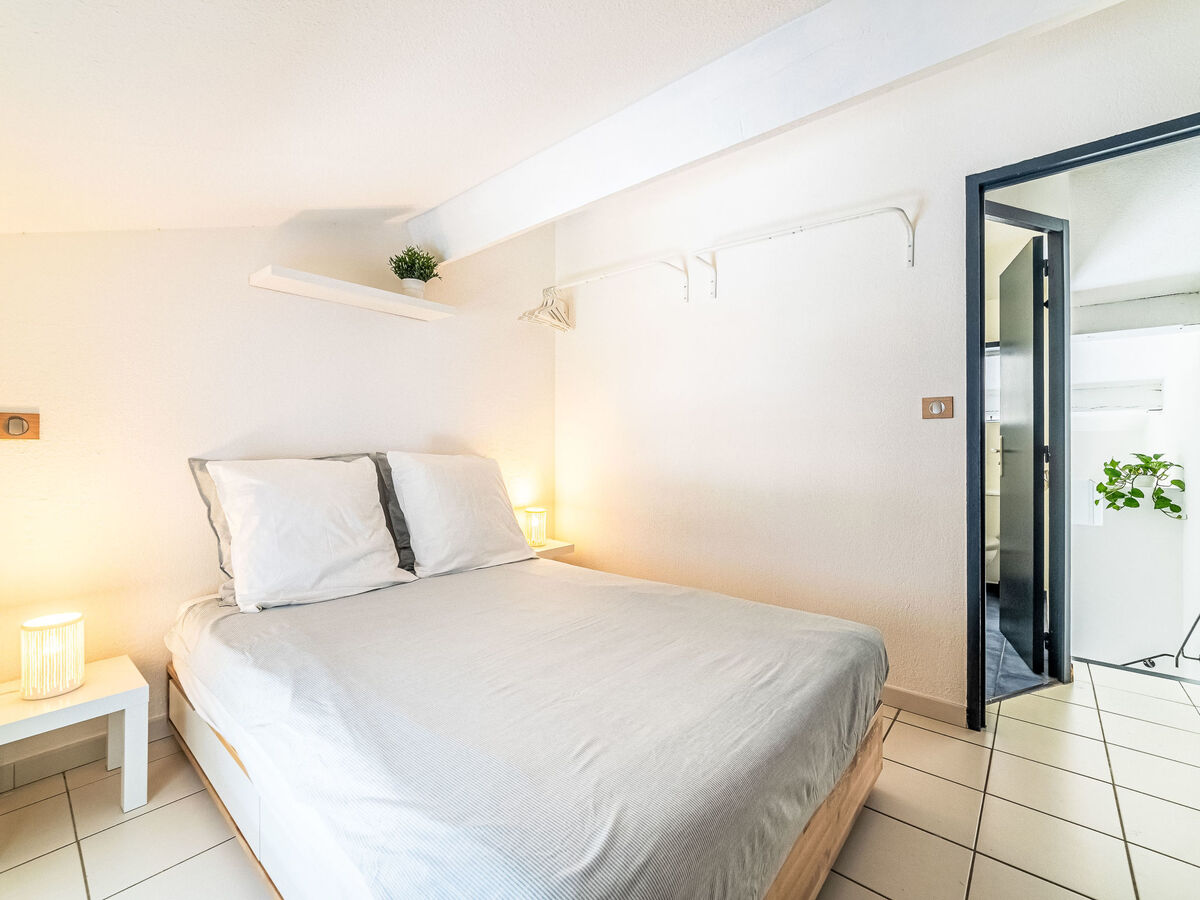 1 chambre avec 1 grand-lit (140 cm, longueur 200 cm).