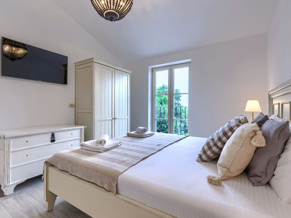 1 chambre avec 1 grand-lit (160 cm, longueur 200 cm), bain/WC, TV (satellite) et air-conditionné.