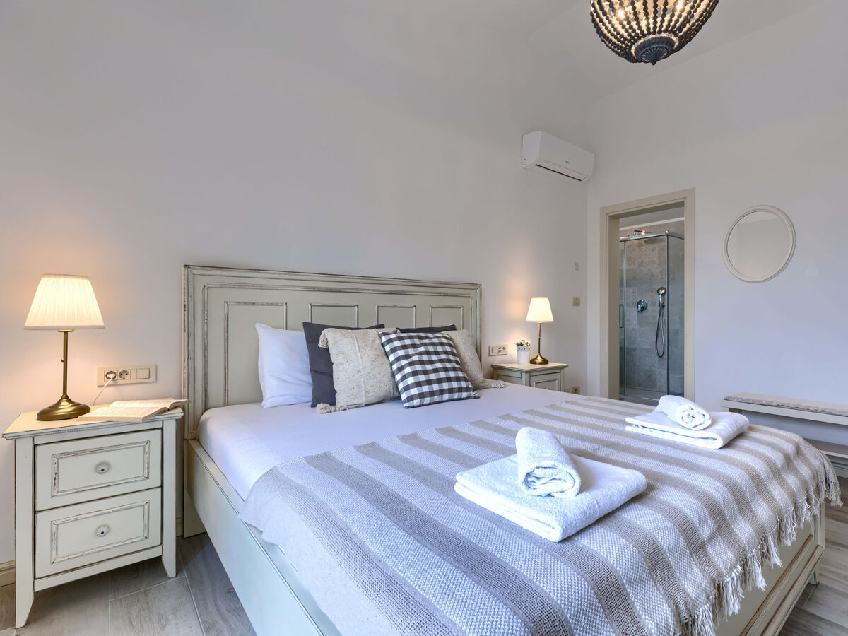 1 chambre avec 1 grand-lit (160 cm, longueur 200 cm), douche/WC, TV (satellite) et air-conditionné.