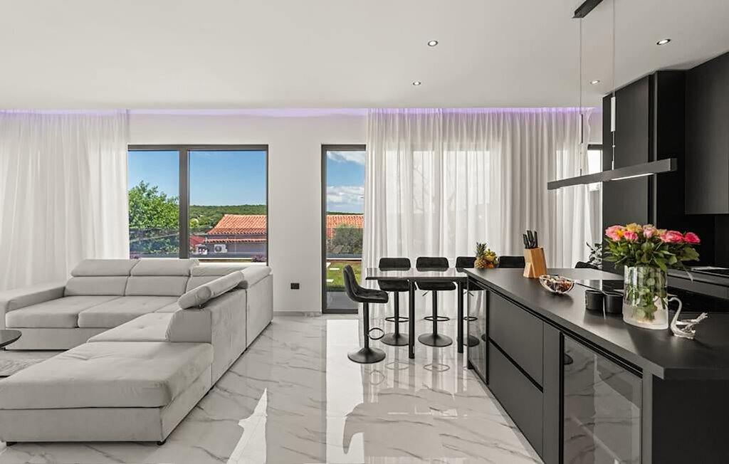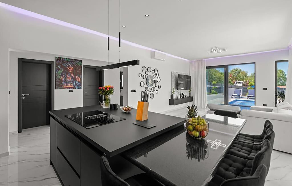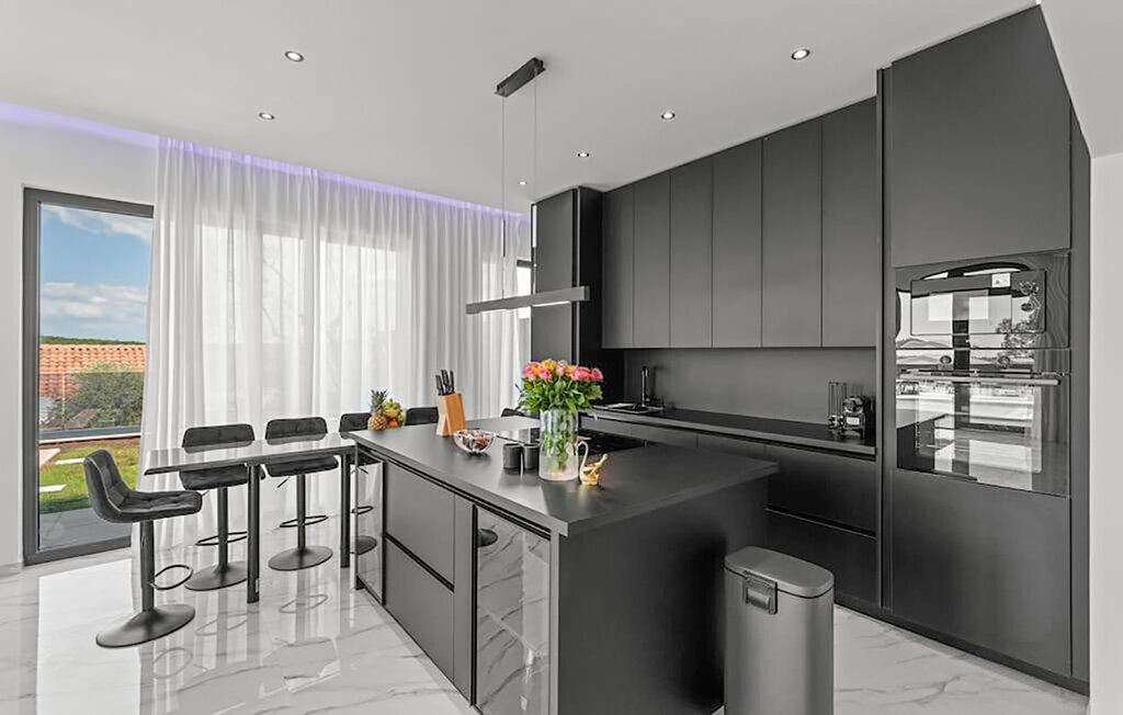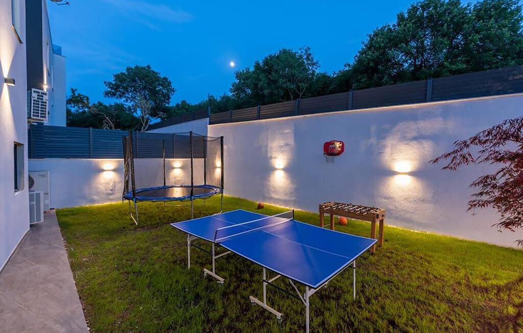 Cette impressionnante maison de vacances à Sorici, située de manière idyllique dans le paysage pittoresque de l'Istrie, vous offre le lieu de retraite idéal pour le calme, le confort et la détente. Commencez votre journée par un bain rafraîchissant dans la piscine et laissez le quotidien derrière vous tout en vous relaxant sur les confortables chaises longues. Amusez-vous aussi de temps en temps en sautant sur le trampoline ou en faisant une partie de ping-pong. Le balcon à l'étage supérieur vous offre une vue de rêve sur le paysage environnant, tandis que celui qui est couvert est l'endroit idéal pour des repas conviviaux en famille.