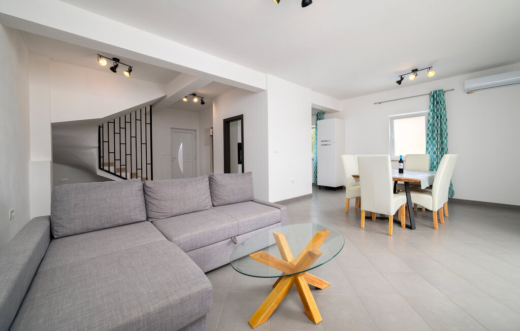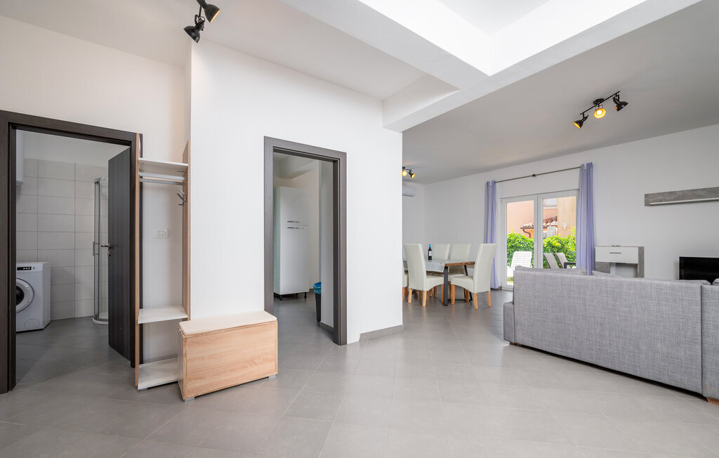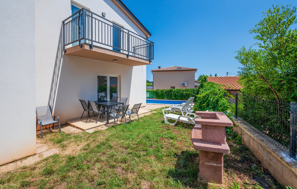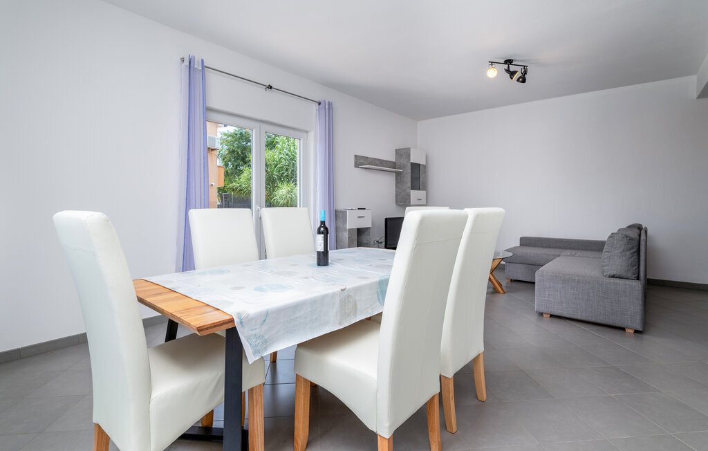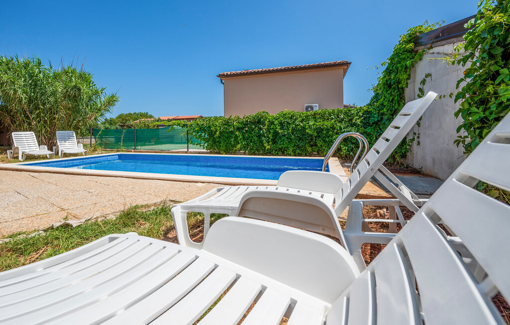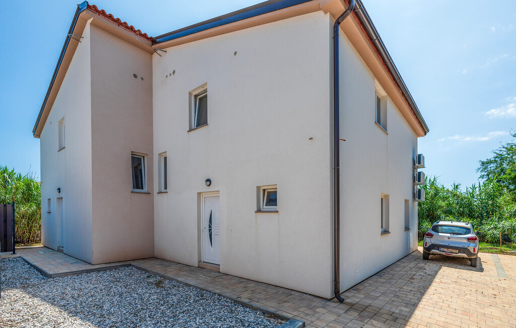 Votre maison de vacances moderne se trouve dans un endroit calme et vous offre un point de départ idéal pour explorer aussi bien la ville historique de Pula que la charmante ville côtière de Medulin. Commencez votre journée par un plongeon dans la piscine privée, entourée de chaises longues confortables. Profitez du soleil tout en vous relaxant sur la terrasse ou en prenant un délicieux petit déjeuner en plein air. Préparez vos repas dans la cuisine pratique et bien équipée. Le salon spacieux vous offre beaucoup d'espace pour vous détendre. Installez-vous sur le canapé confortable et profitez du calme ou regardez un film dans cette atmosphère accueillante.