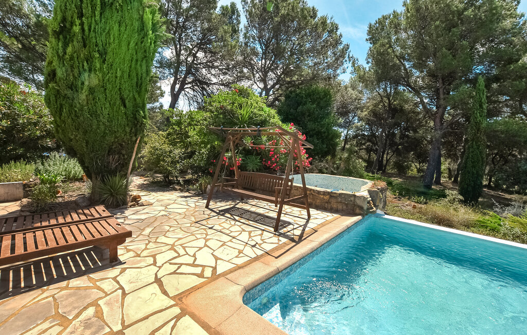 Bien-être à l'extérieur : Location de vacances disposant de chaises-longues et d'un ou plusieurs équipements tels que piscine extérieure, jacuzzi extérieur, lit à baldaquin de jardin etc...