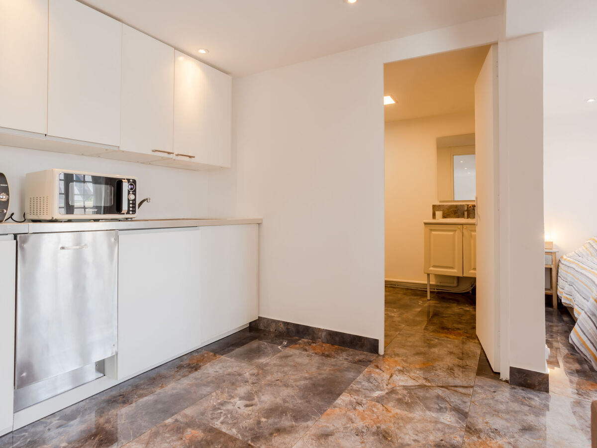 Coin cuisine (four, lave-vaisselle, 4 plaques vitrocéramiques, grille-pain, bouilloire électrique, micro-ondes, congélateur, cafetière électrique, Capsules pour machine à café (TASSIMO) (NON INCLUSES)).