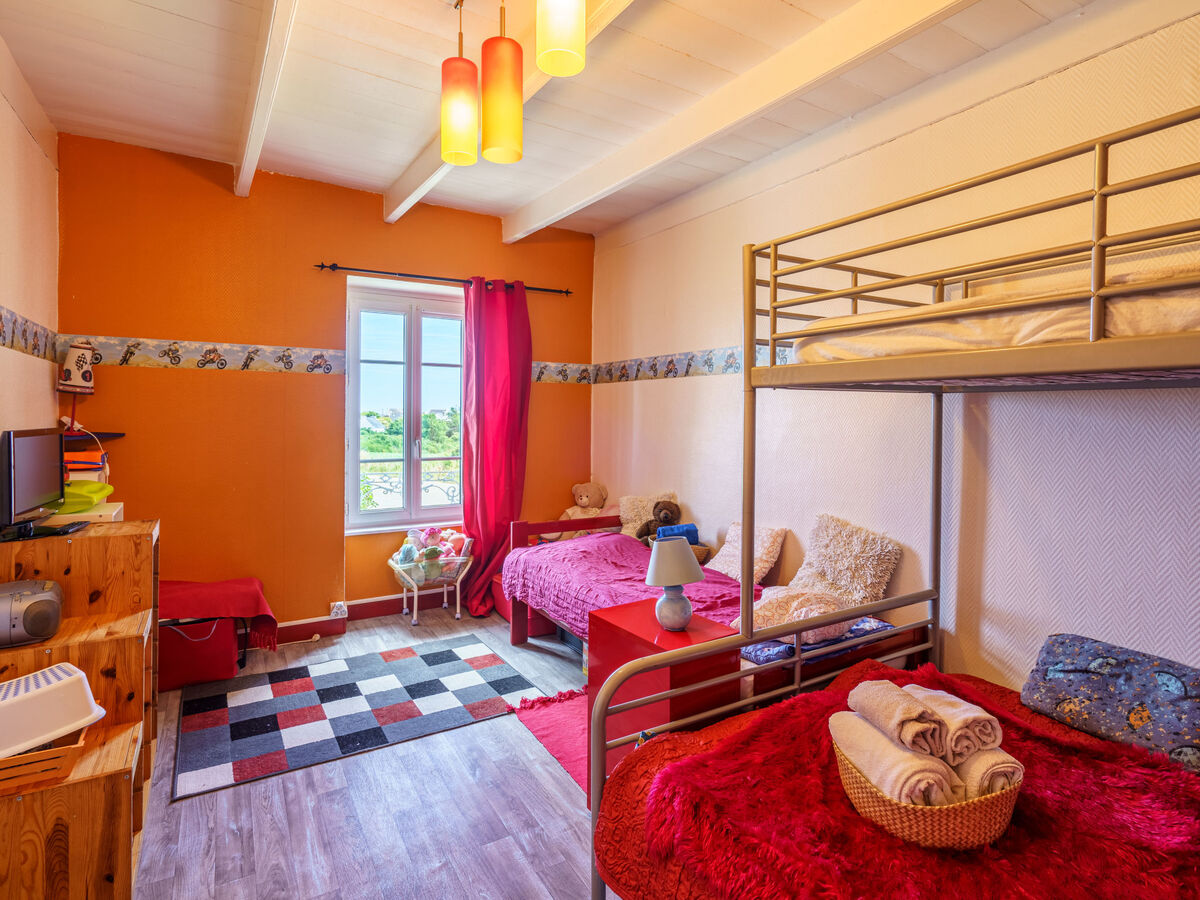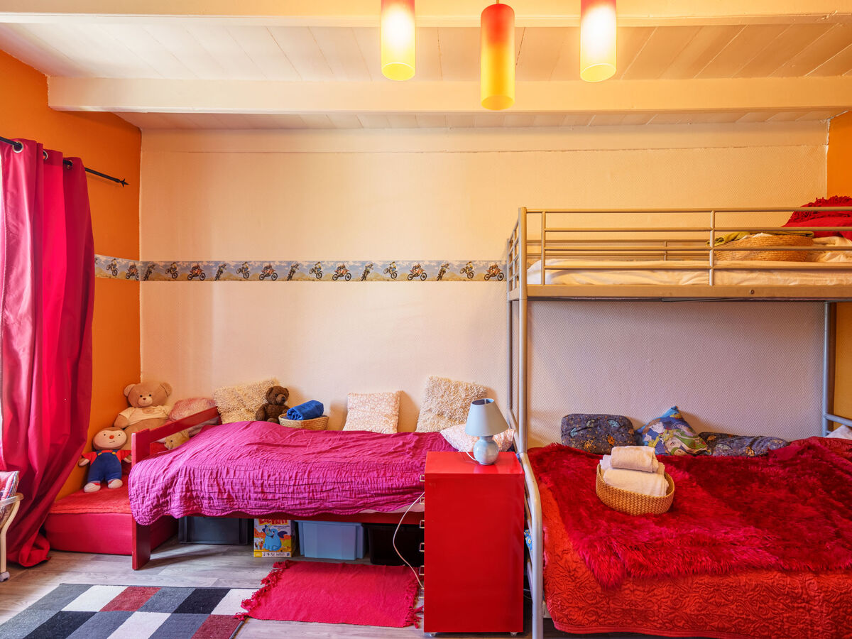 À l'étage supérieur: 1 chambre avec 1 lits superposés (90 cm, longueur 190 cm), 1 grand-lit (140 cm, longueur 190 cm).