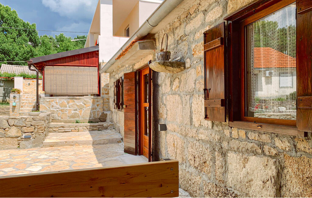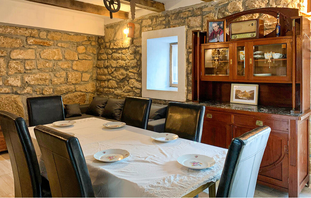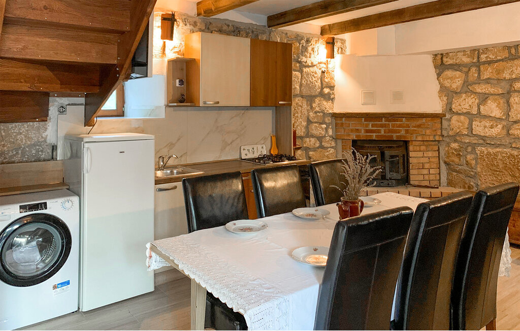 Cachée dans le paysage idyllique du nord de la Dalmatie, cette maison traditionnelle en pierre vous attend avec son aménagement rustique mais élégant. De hauts plafonds à poutres en bois, des cheminées ouvertes et des couleurs chaudes créent une atmosphère confortable. La cuisine ouverte et le salon accueillant offrent un cadre idéal pour des soirées de détente.