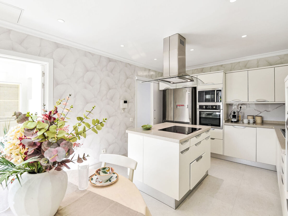 Cuisine ouverte (four, lave-vaisselle, 4 plaques vitrocéramiques, grille-pain, bouilloire électrique, micro-ondes, congélateur, cafetière électrique).