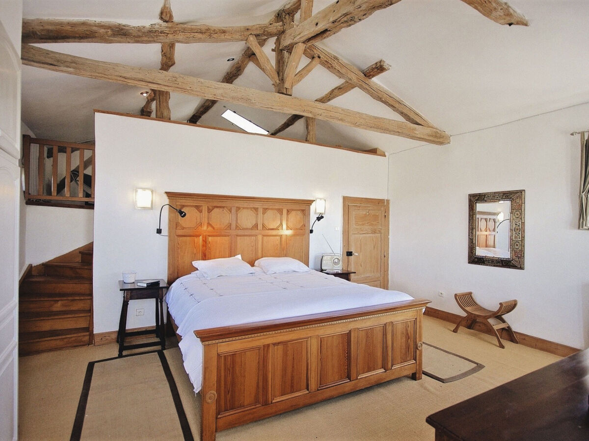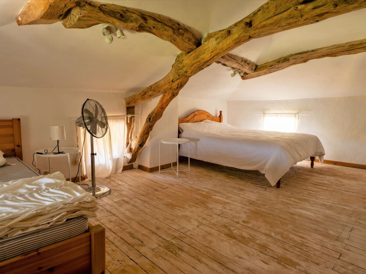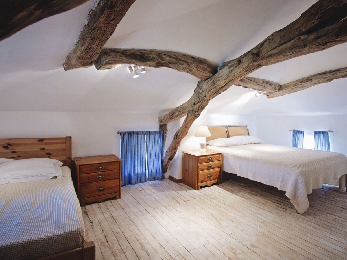 1 chambre, mansardée avec 1 grand-lit (160 cm, longueur 200 cm).