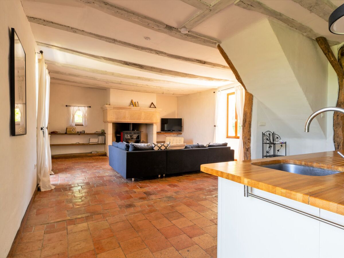 Salon avec poêle suédois et TV (câblée) (écran plat).