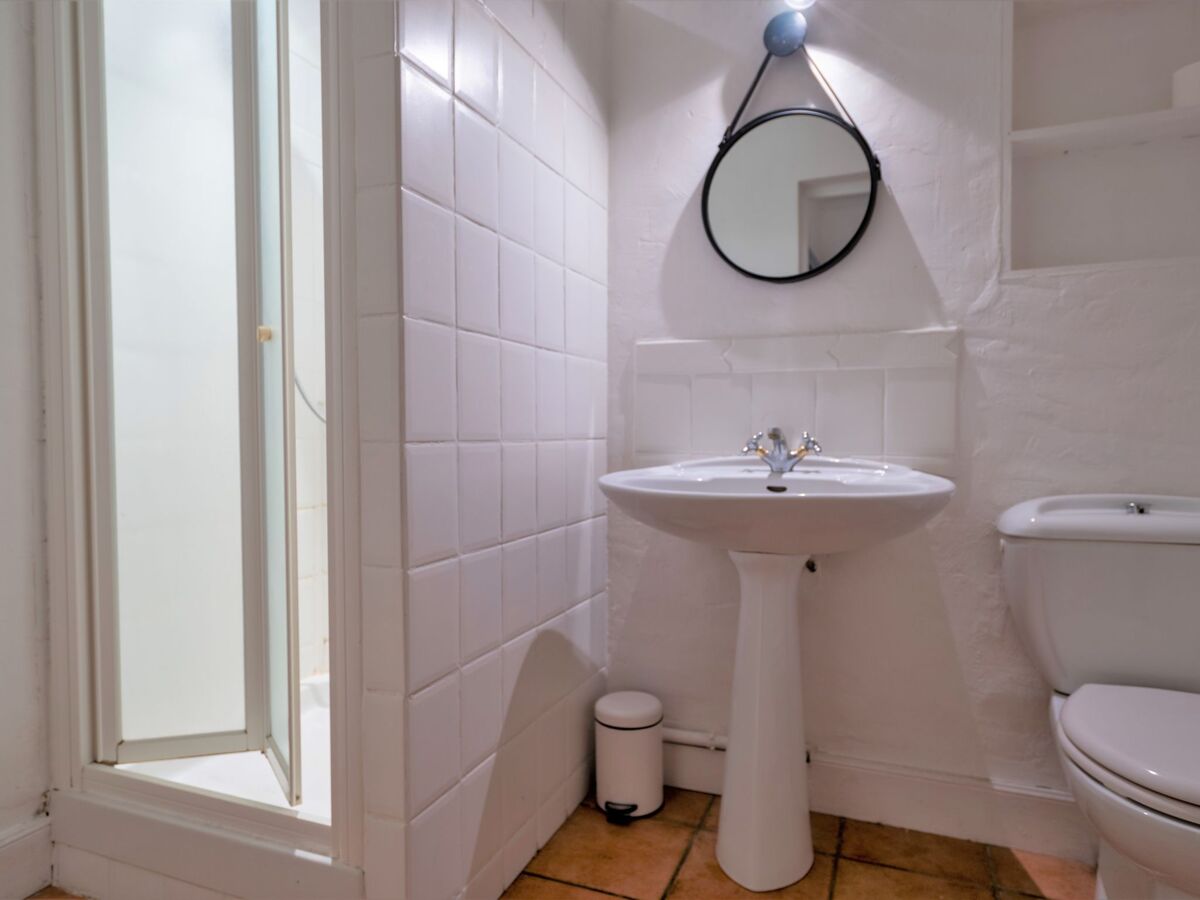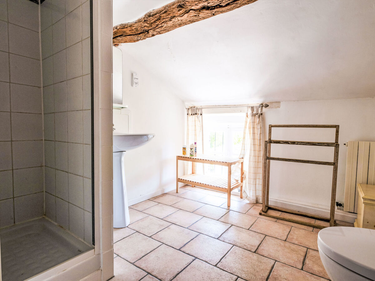 1 chambre avec 1 grand-lit (140 cm, longueur 190 cm), douche/WC.