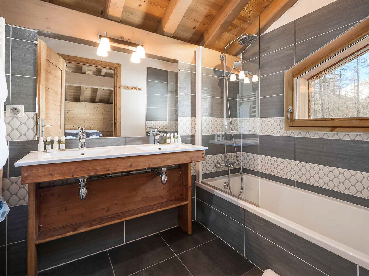 À l'étage supérieur: 2 chambres, chaque chambre avec: 1 lit double (1 x 160 cm, longueur 200 cm), bain/WC et TV (écran plat).
