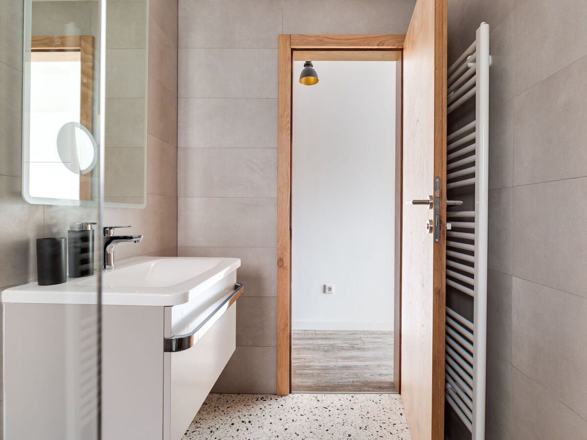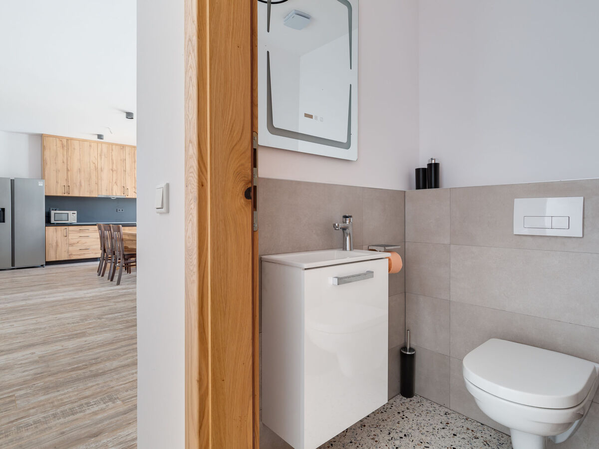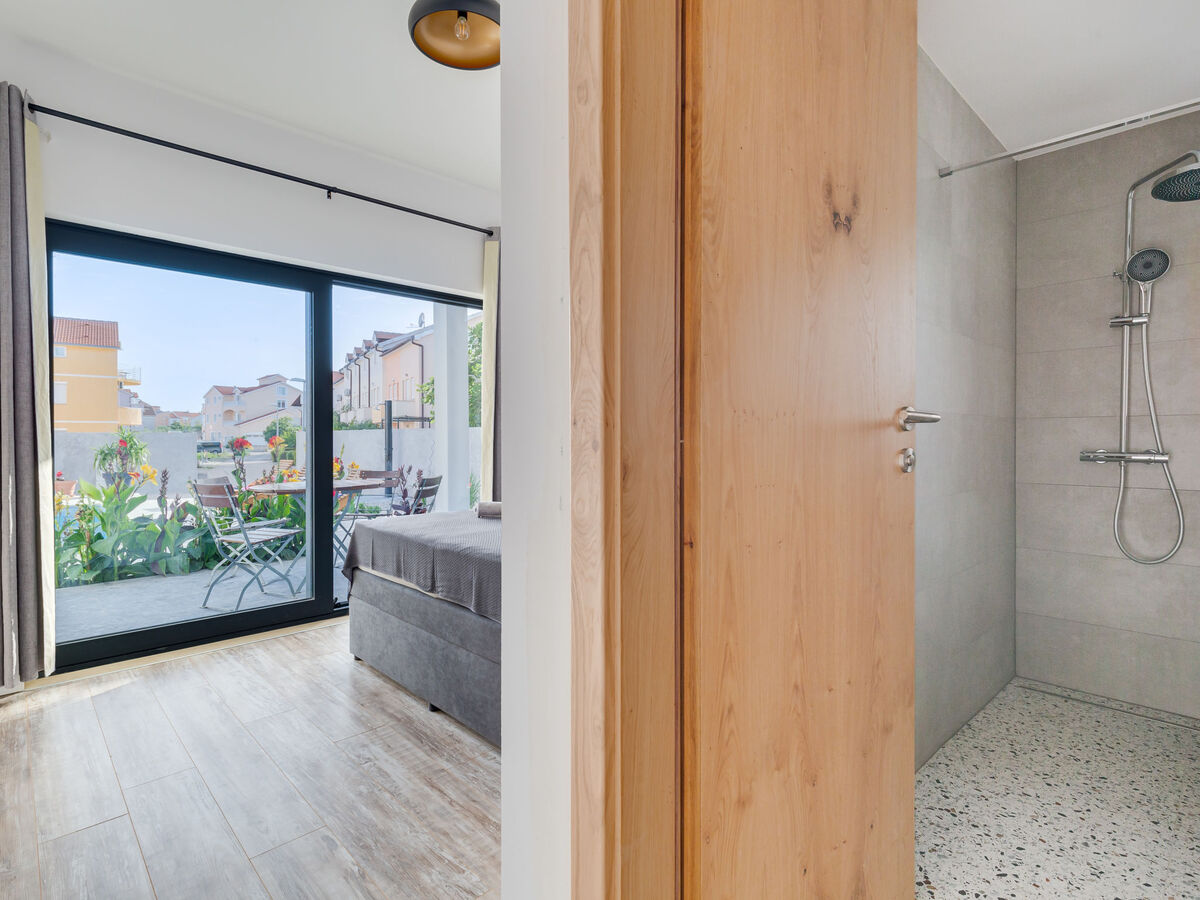 1 chambre avec 1 grand-lit (160 cm, longueur 200 cm), douche/WC et air-conditionné.