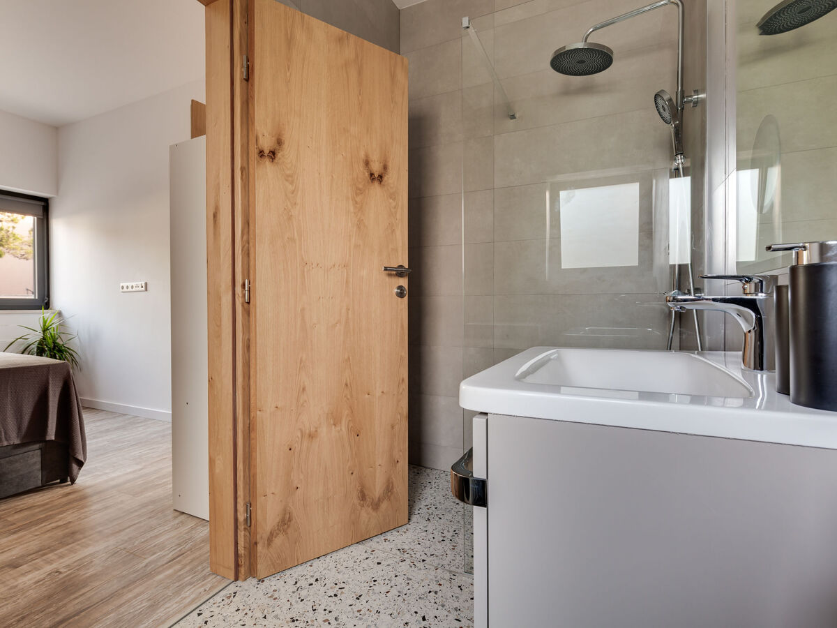2 chambres, chaque chambre avec: 1 grand-lit (160 cm, longueur 200 cm), douche/WC et air-conditionné.