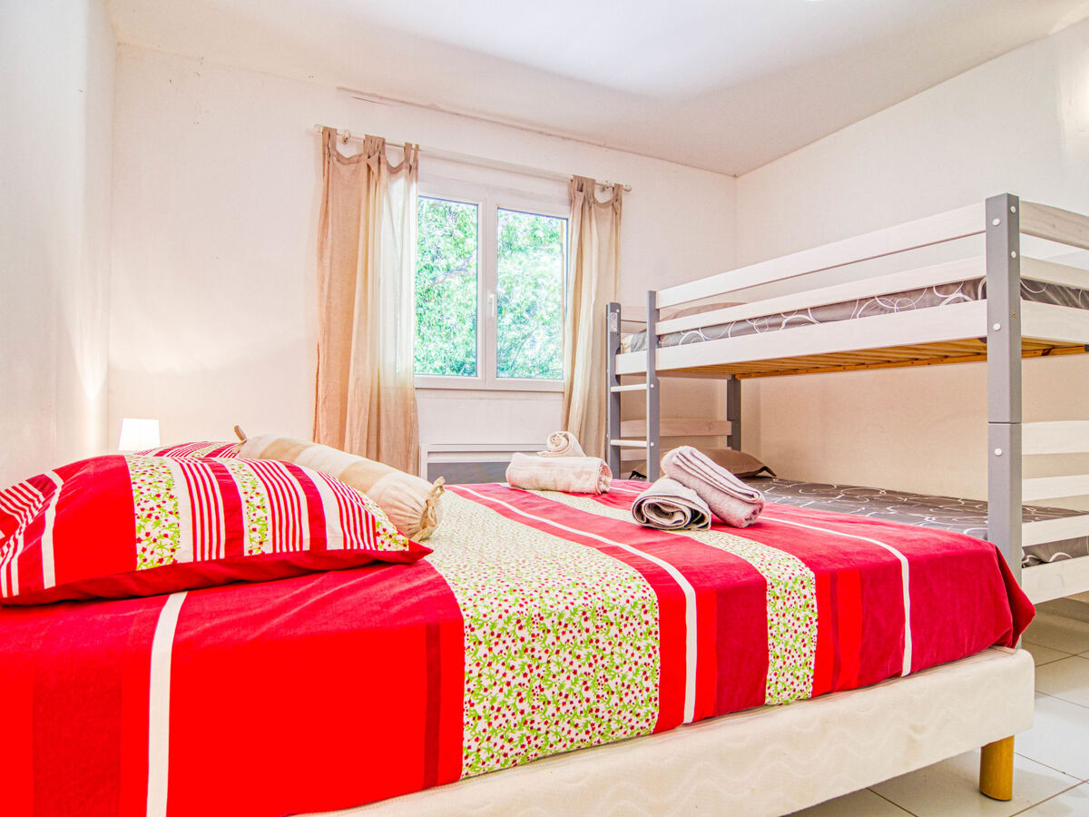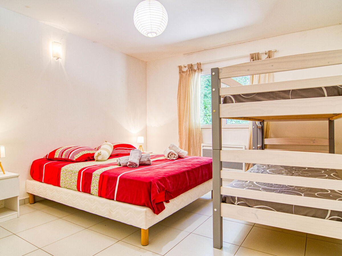 1 chambre avec 1 x 2 lits superposés (90 cm, longueur 190 cm), 1 grand-lit (160 cm, longueur 200 cm).