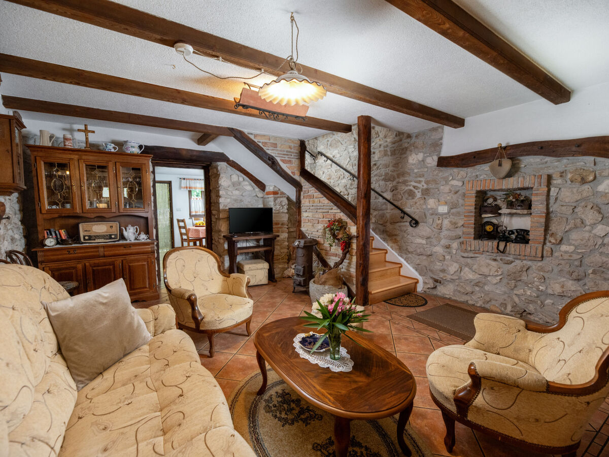 Aménagement agréable et rustique: séjour avec TV (satellite).