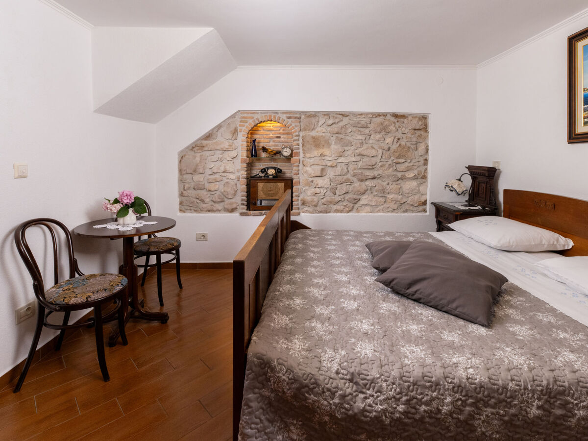 1 chambre avec 1 grand-lit (190 cm, longueur 200 cm), douche/WC, TV (satellite) et air-conditionné.